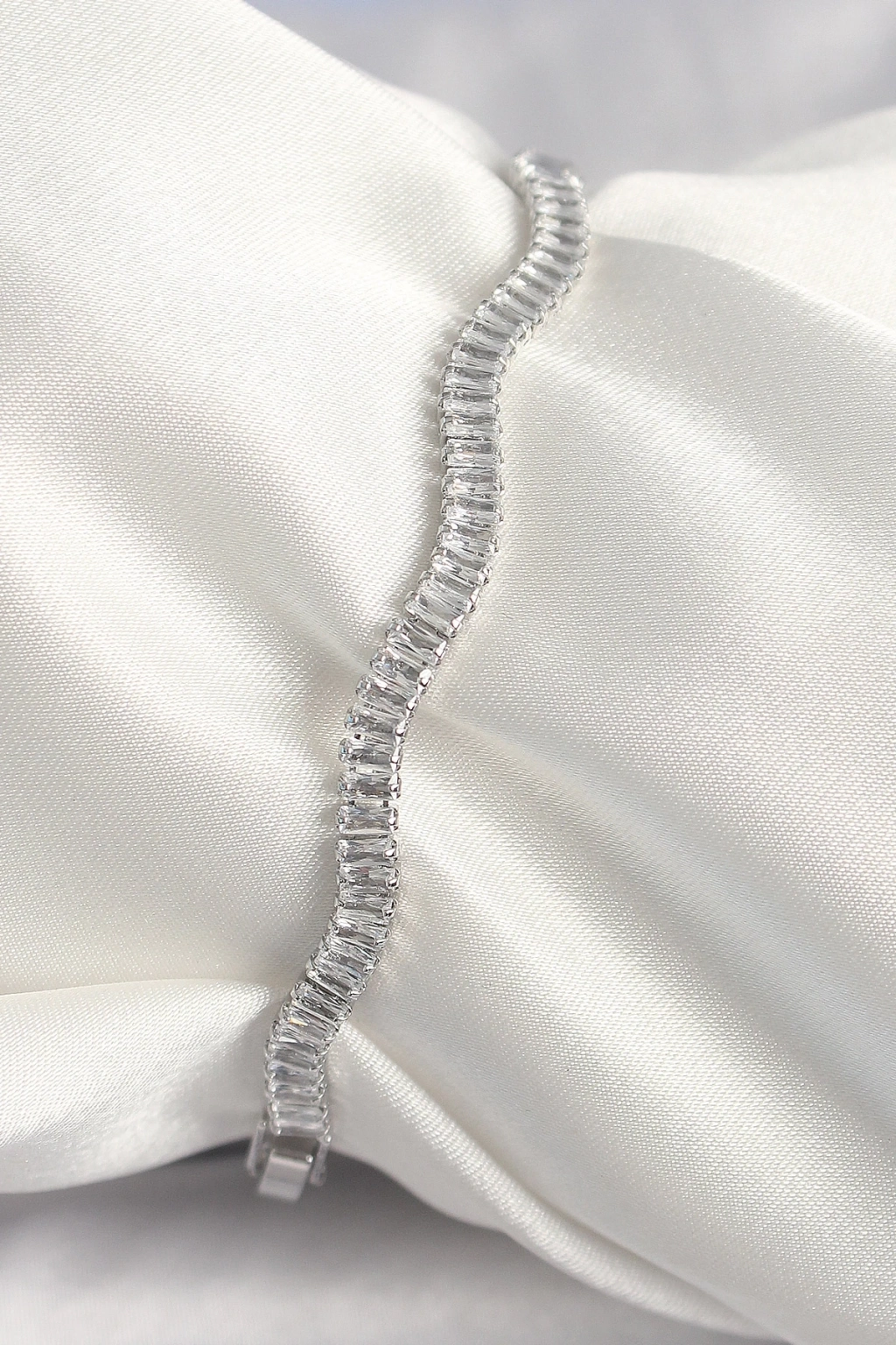 BFS Pirinç Gümüş Renk Su Yolu Zirkon Taşlı Model Kadın Bileklik