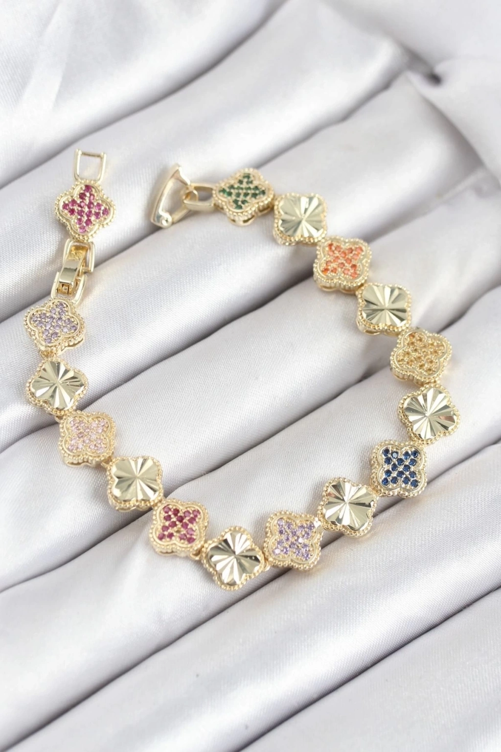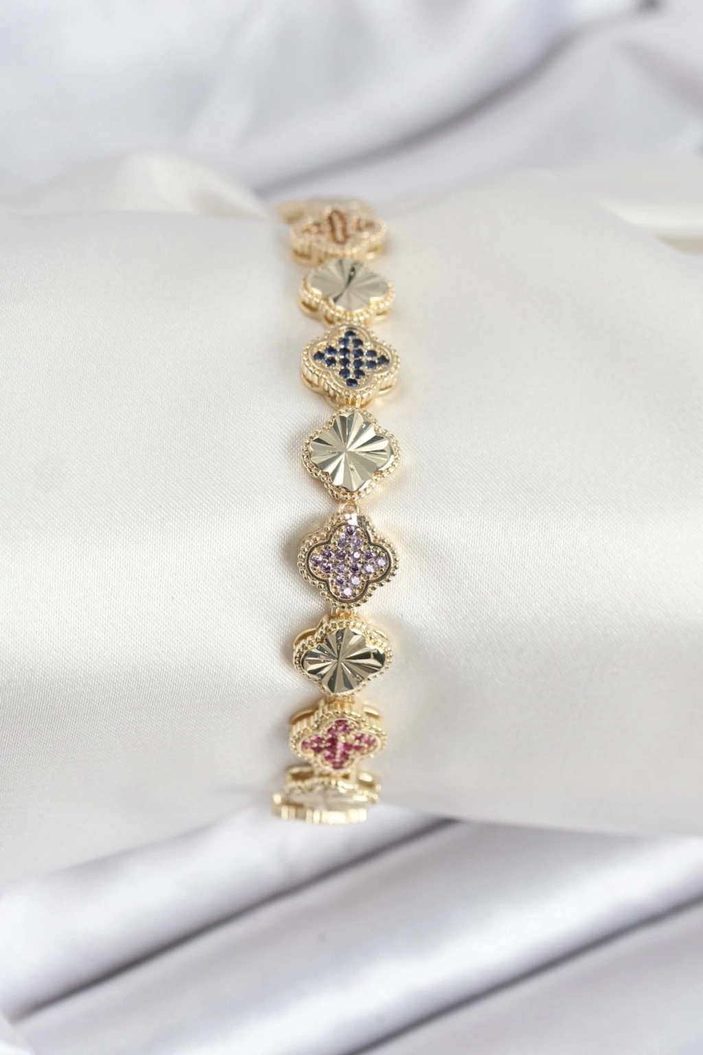 BFS Pirinç VIP Seri Yonca Zirkon Taşlı Kadın Bileklik