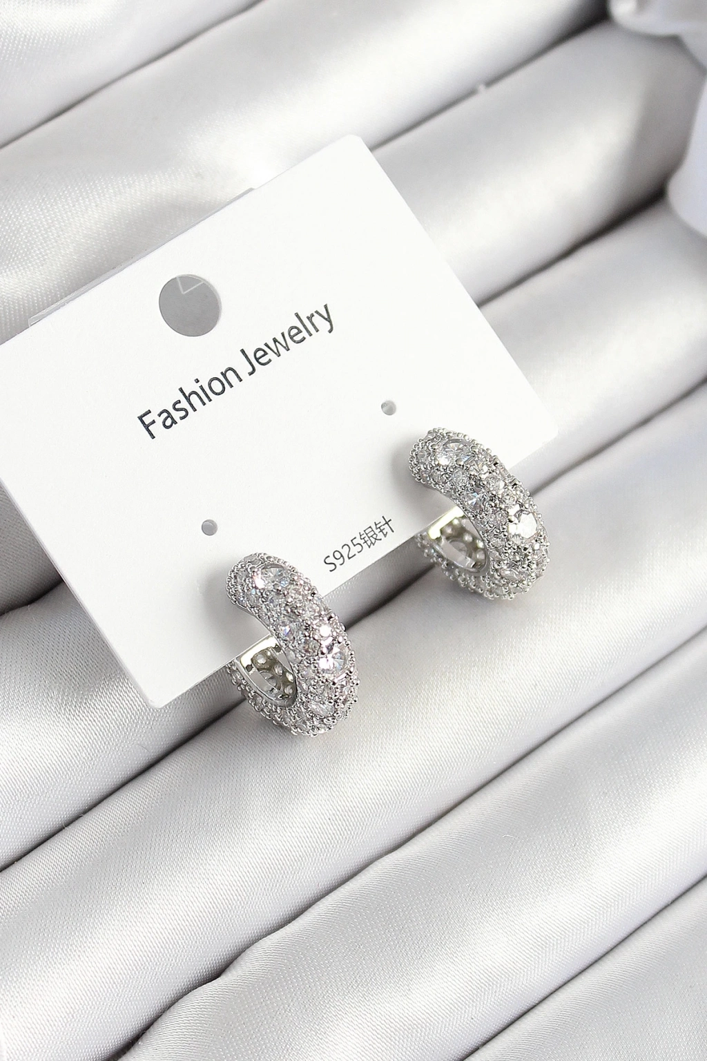 BFS Pirinç Zirkon Taşlı Halka Model Gümüş Renk Kadın Küpe