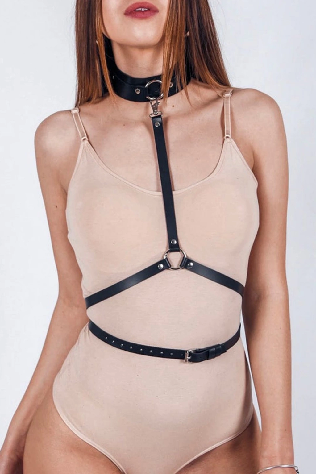 Boyun Tasmalı Fantazi Deri Harness 1124