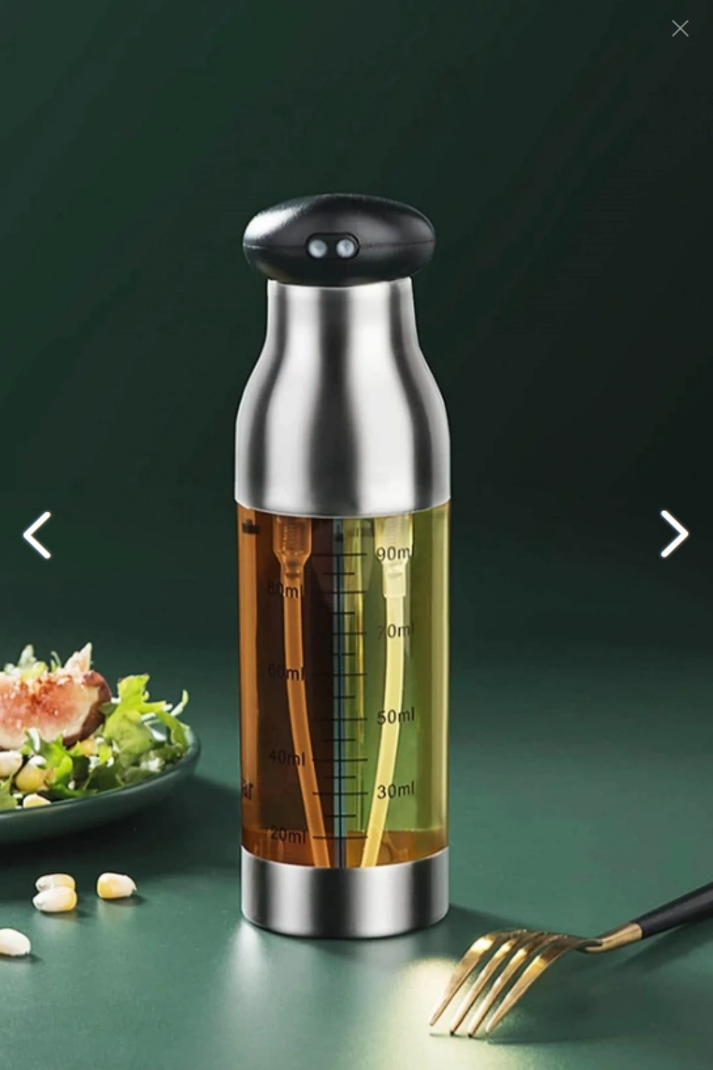 Çift Ölçekli Yağ ve Sirke Sprey ŞişesiÜrün Açıklaması:Bu yenilikçi 90 ml kapasiteli çift ölçekli yağ ve sirke sprey şişesi, mutfağınızda yağ ve sirke kullanımını daha da pratik hale getirir. Şeffaf gövdesindeki çift ölçek skalası sayesinde, yağı veya sirkeyi dilediğiniz miktarda kolayca ölçebilir ve yemeklerinize dengeli bir şekilde ekleyebilirsiniz. Paslanmaz çelik tasarımı, dayanıklılığı ve şıklığı bir araya getirirken, sprey başlığıyla homojen bir dağılım sağlar. Salatalardan kızartmalara kadar her türlü yemeğinizde sağlıklı ve lezzetli bir deneyim yaşamanızı sağlar.Malzeme: Paslanmaz çelik ve şeffaf plastik gövdeKapasite: 90 mlÇift Ölçekli Gövde: İki ayrı ölçüm skalası ile kolay miktar kontrolüSprey Başlığı: Homojen ve kontrollü dağılım için idealKullanım Alanı: Salatalar, kızartmalar ve diğer yemeklerde sağlıklı yağ ve sirke kullanımı