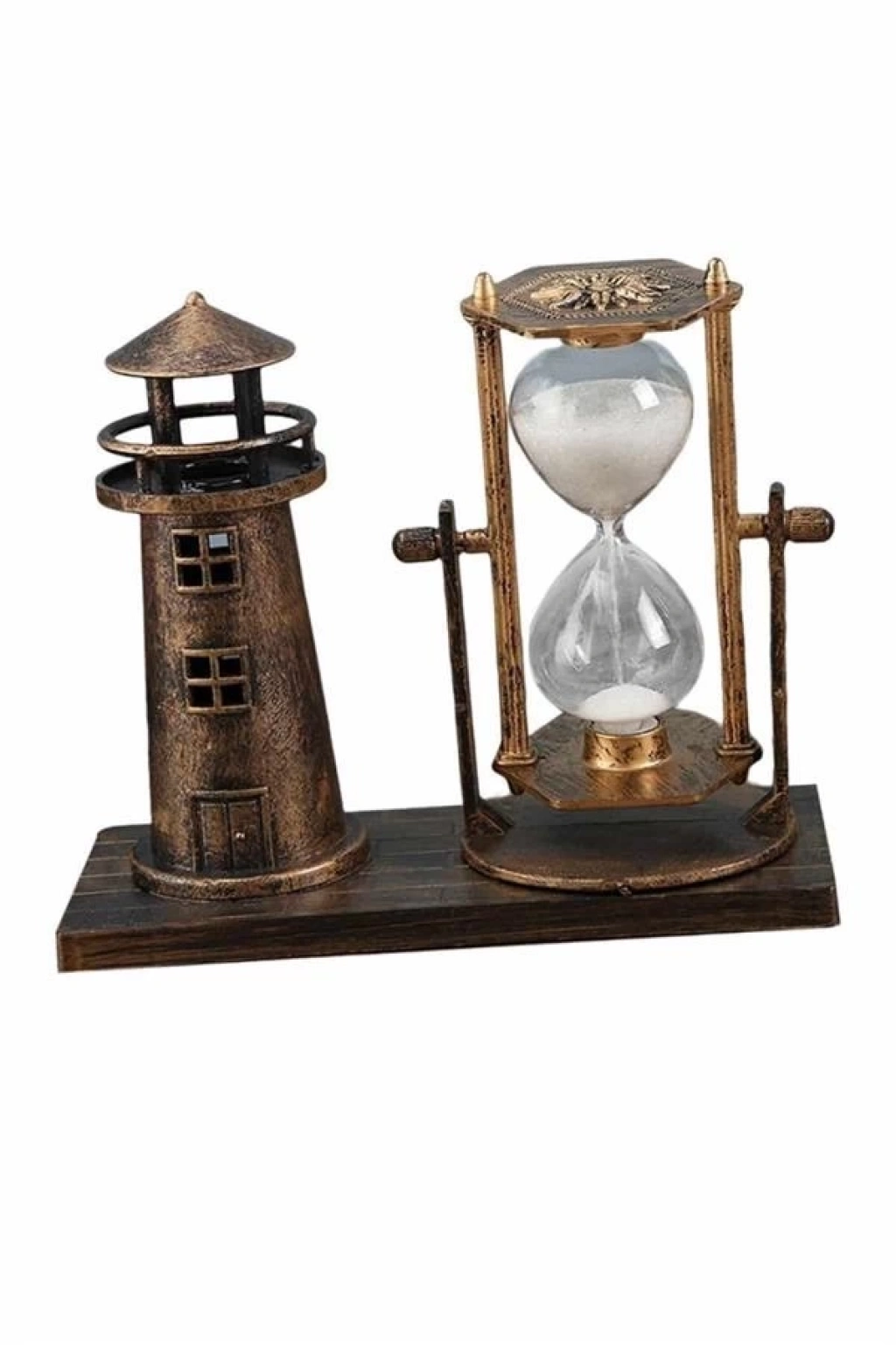 ÇOK SATAN Deniz Feneri Kum Saati Ahşap Görünümlü Vintage Tarz Biblo