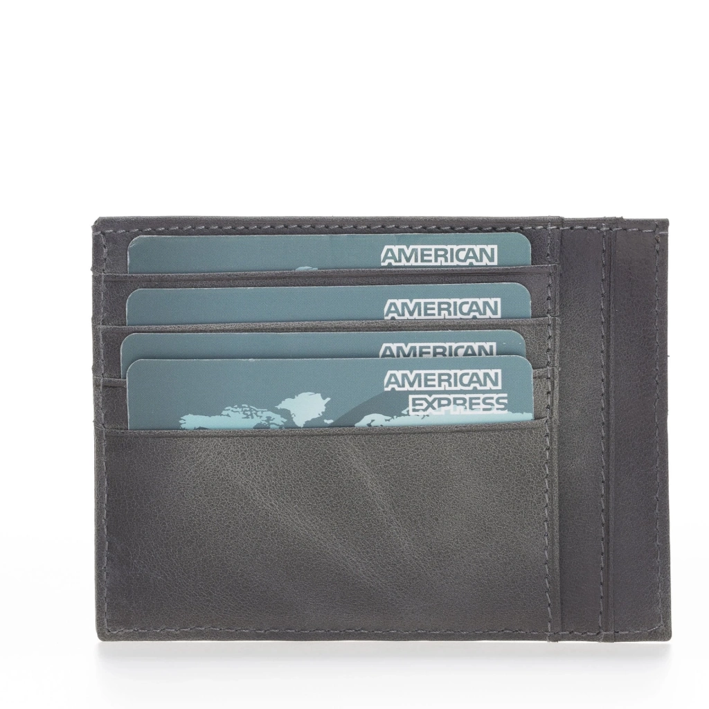 • Deri Kartlık, Bozuk Para Bölmesi, 6 Adet Kart Bölmeli, Efektli Gri