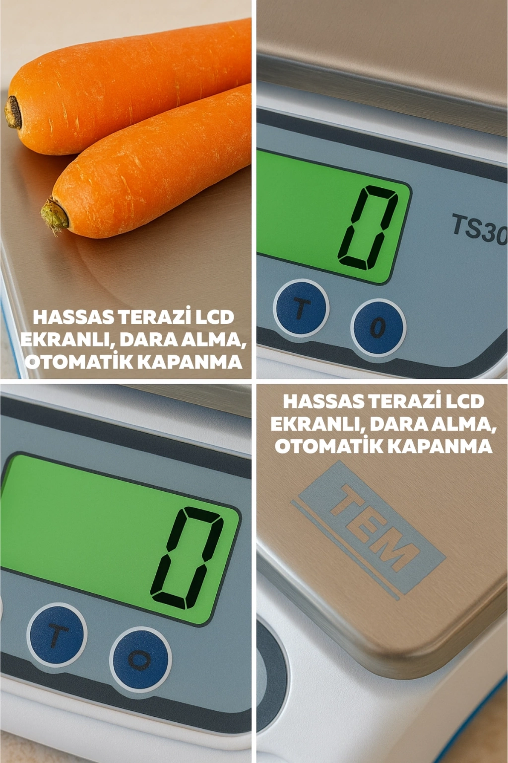 - Fonksiyonlar: Dara alma, otomatik sıfırlama, adet sayma, otomatik kapanma
