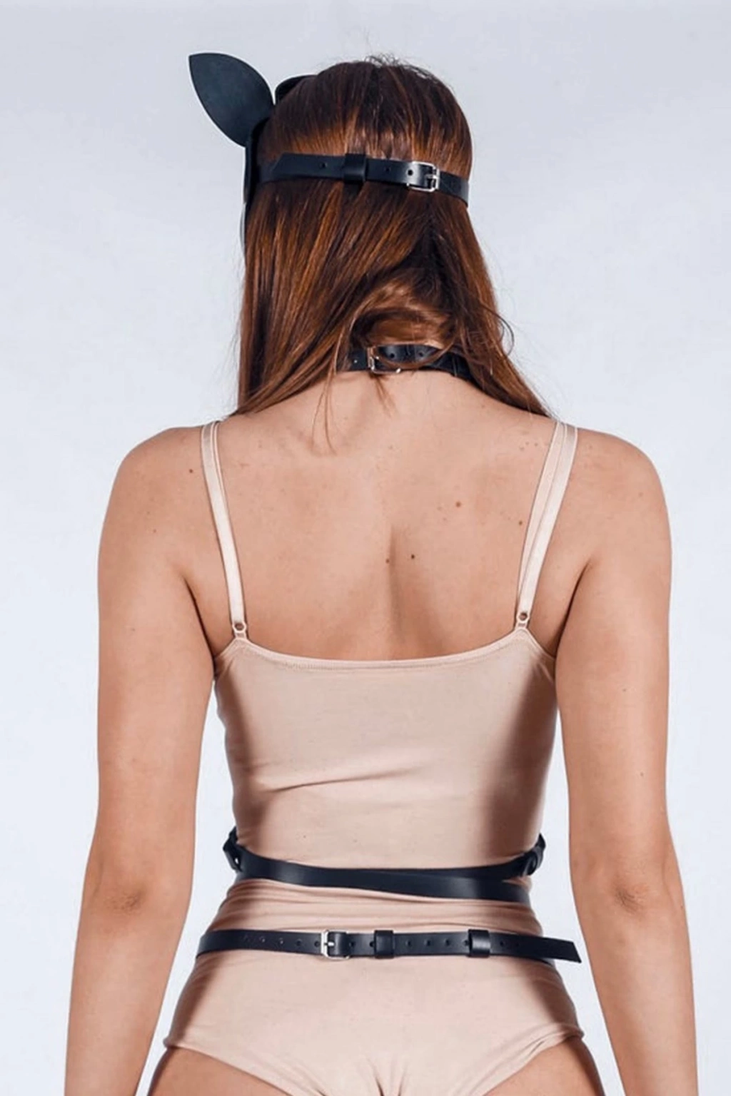 Maskeli Özel Tasarım Fantazi Deri Harness Seti 1123
