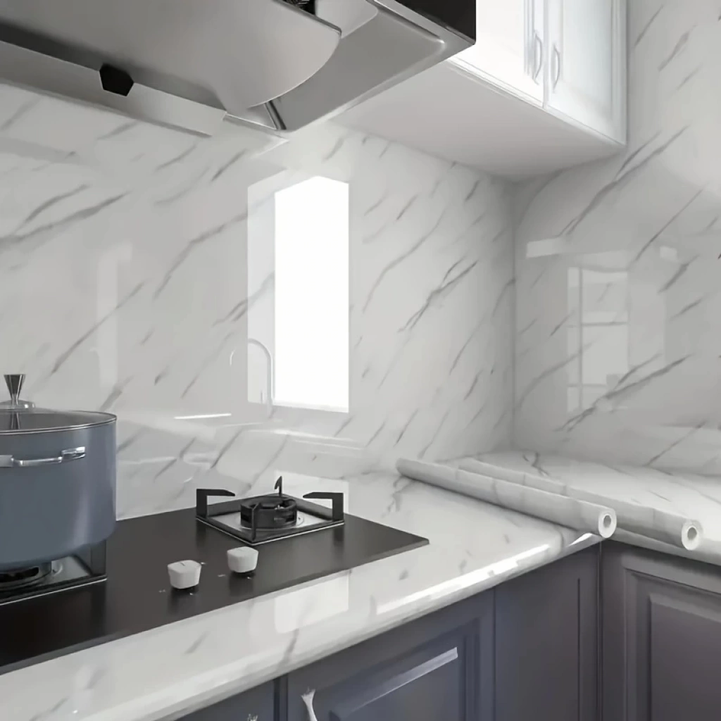 Mutfak ve diğer yaşam alanlarınızda pratik, dayanıklı ve şık bir yenilik yapmak istiyorsanız, bu çok amaçlı mermer desenli folyo tam size göre!