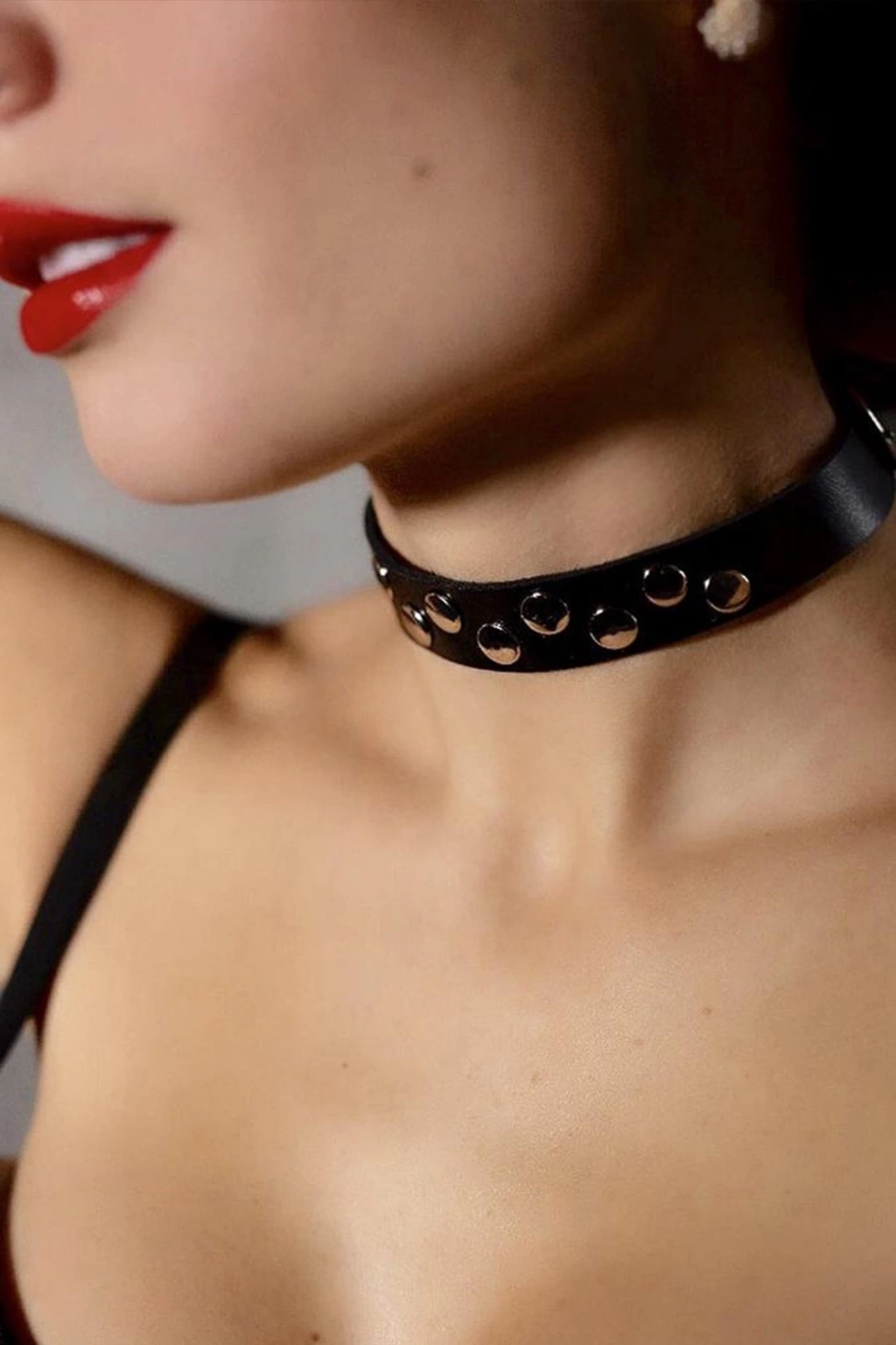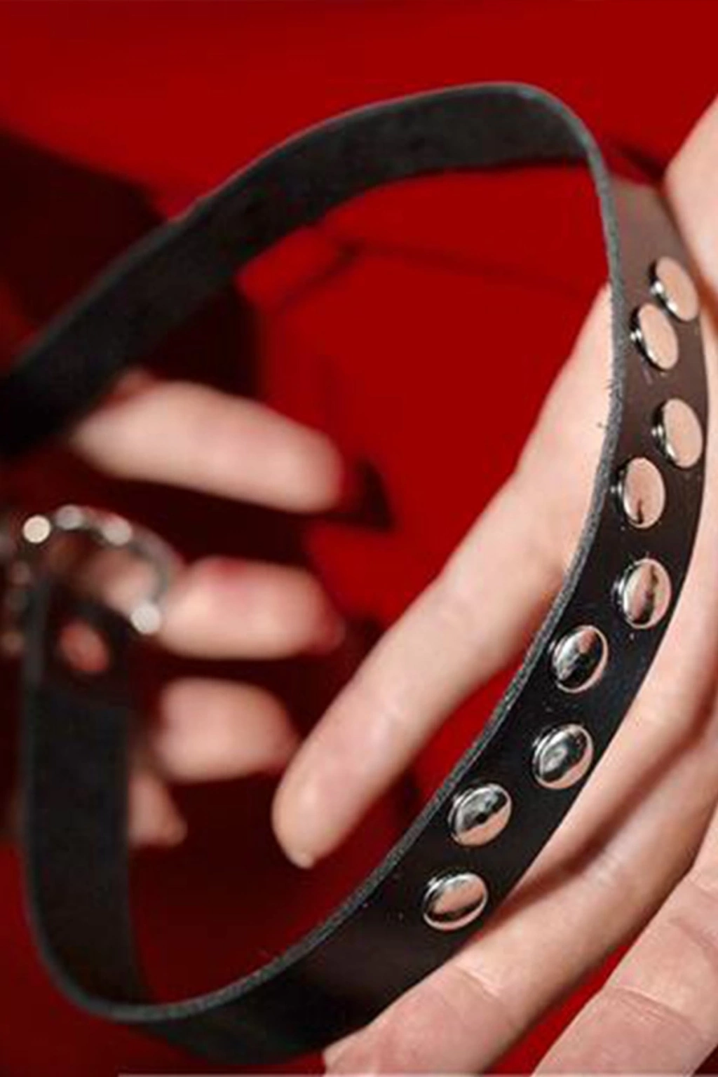 ÇOK SATAN Özel Tasarım Seksi Siyah Deri İnce Boyunluk 1060