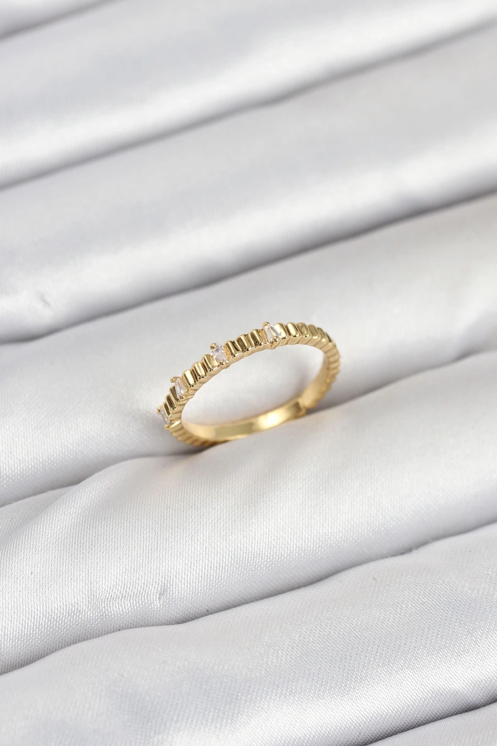 Pirinç Gold Renk Lazer Kesim Kadın Yüzük