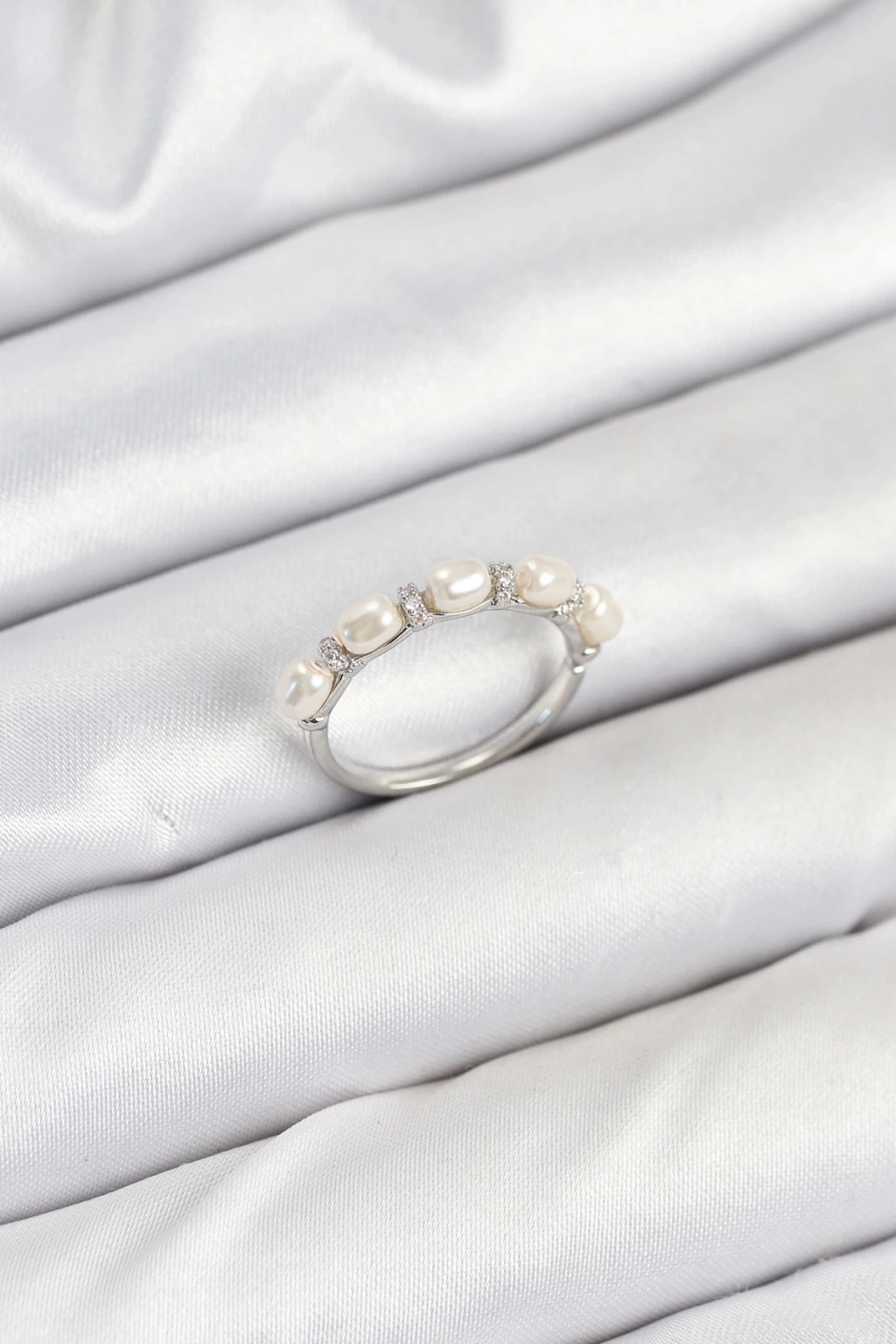 ÇOK SATAN Pirinç Gümüş Renk Sıralı İncili Kadın Yüzük