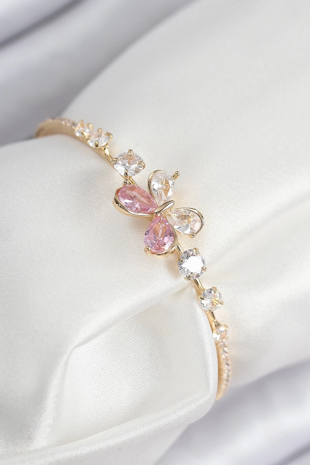 ÇOK SATAN Pirinç Zirkon Taşlı Kelebek Model Gold Renk Kadın Bileklik