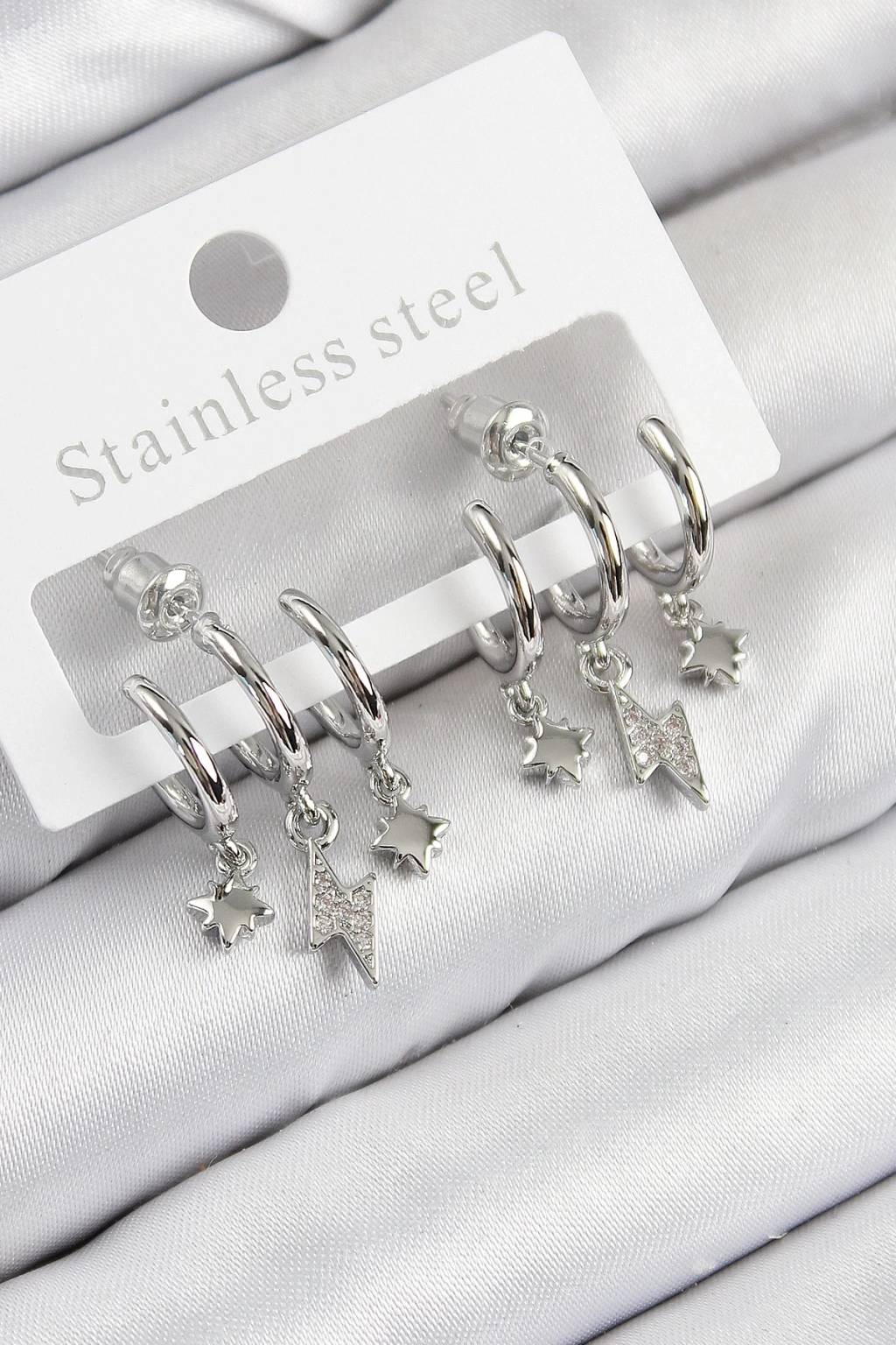 ÇOK SATAN Pirinç Zirkon Taşlı Şimşek Model Gümüş Renk Kadın Küpe