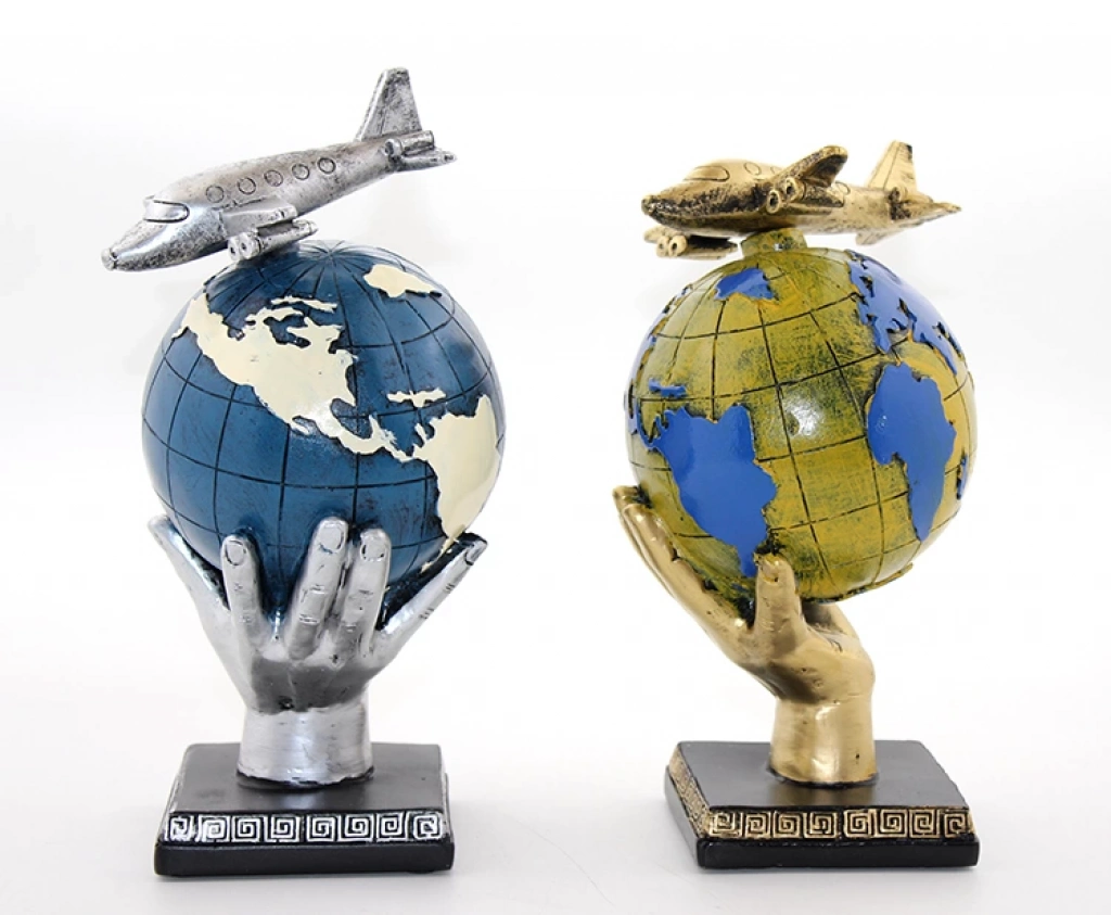 POLYESTER UÇAKLI DÜNYA KÜREÜrün ÖzellikleriPolyester Uçaklı Dünya Küre, dünya haritası üzerine yerleştirilmiş bir uçak figürüyle tasarlanmış şık bir dekoratif üründür. Dünya küresinin üzerine uçak yerleştirilmiş olup, her iki modelde de farklı renk seçenekleri ve tasarımlar sunulmaktadır. Yüksek kaliteli polyester malzeme kullanılarak üretilen bu figür, modern ve estetik bir atmosfer yaratır. Küre ve uçak figürleri arasındaki ilişki, seyahat ve keşif temasını güçlü bir şekilde vurgular.Not: Ürün farklı renklerde mevcuttur ve stok durumuna göre karışık gönderilmektedir.Paket İçeriği1 adet Polyester Uçaklı Dünya Küre
