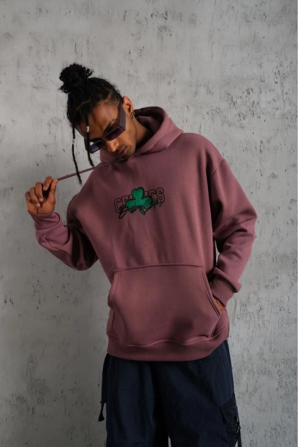 Baskılı Kapüşonlu ve Kordon İpli Sweat - Gül Kurusu