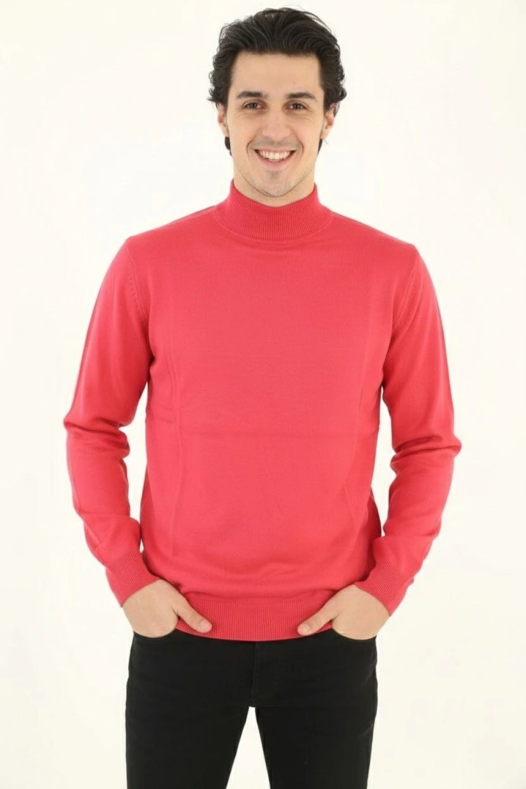 Yarım Boğaz Triko Kazak yumuşak dokulu Pamuklu ince Dokuma, uzun kollu Rahat Regular kalıp - Pembe