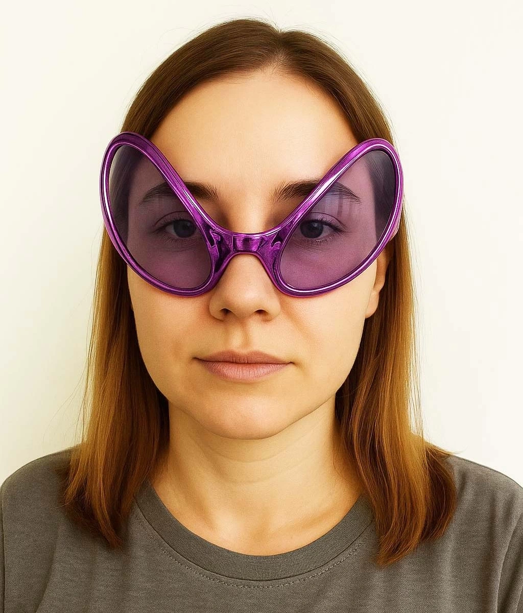 ÇOK SATAN Retro Gözlük - 80 li 90 lı Yıllar Parti Gözlüğü Mor Renk 8x13 cm