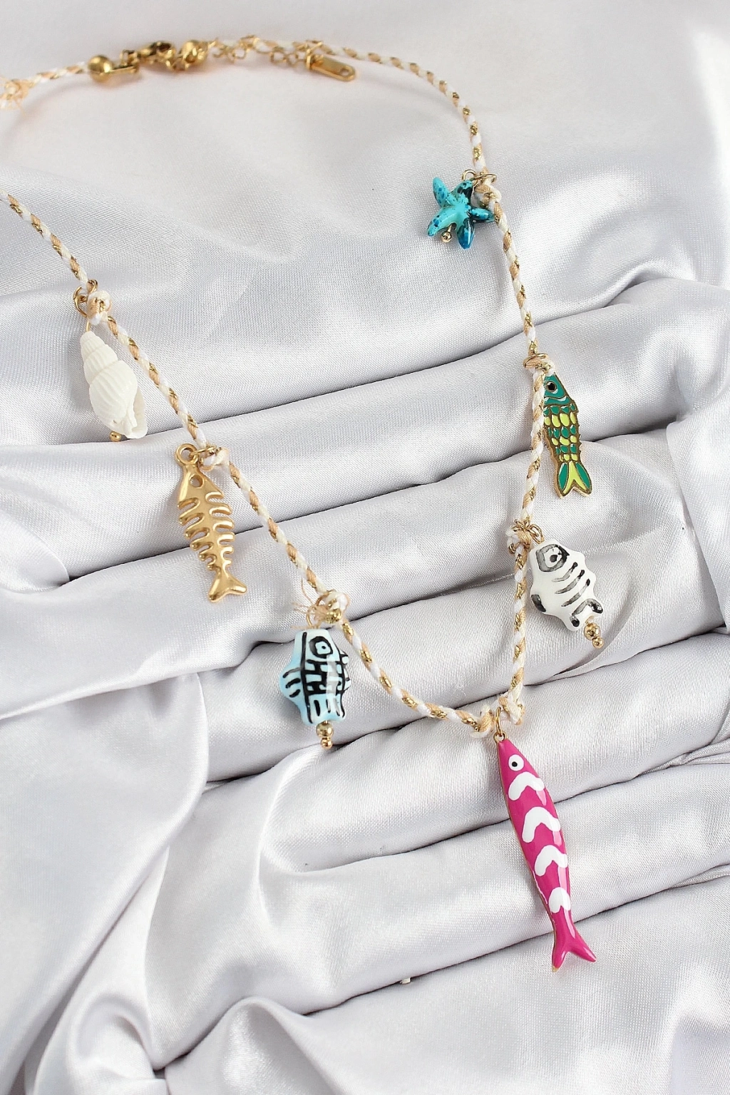 ÇOK SATAN Seramik Motifli Pembe Balık Figürlü Model Krem İp Kadın Kolye