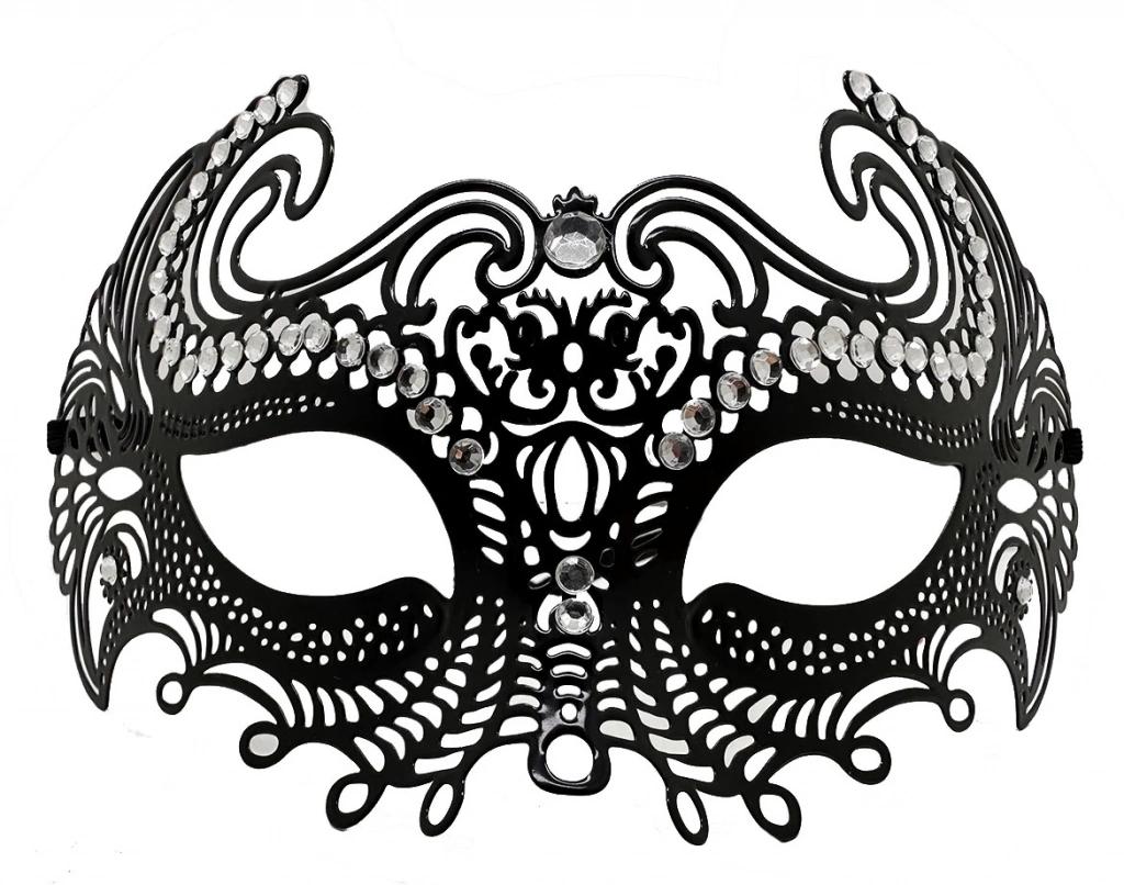 • Siyah Renk Lazer Kesim Üzeri Kristal Taşlı Metal Balo Parti Venedik Maskesi