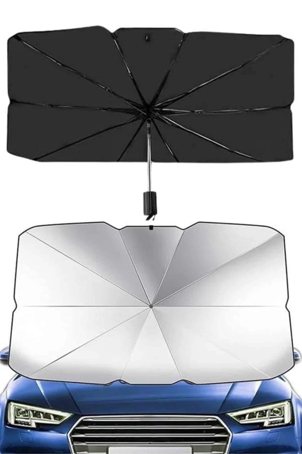 • Taşınabilir Oto Cam Güneşliği Katlanabilir Tüm Araçlara Uyumlu Güneş Gölge Koruyucu