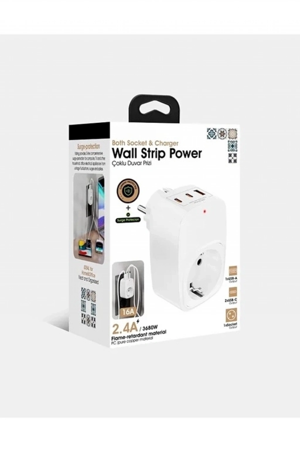ÇOK SATAN Termal Akım Korumalı Isıya Dayanıklı 3’lü Duvar Tipi Priz 3x Usb 1x Type-c