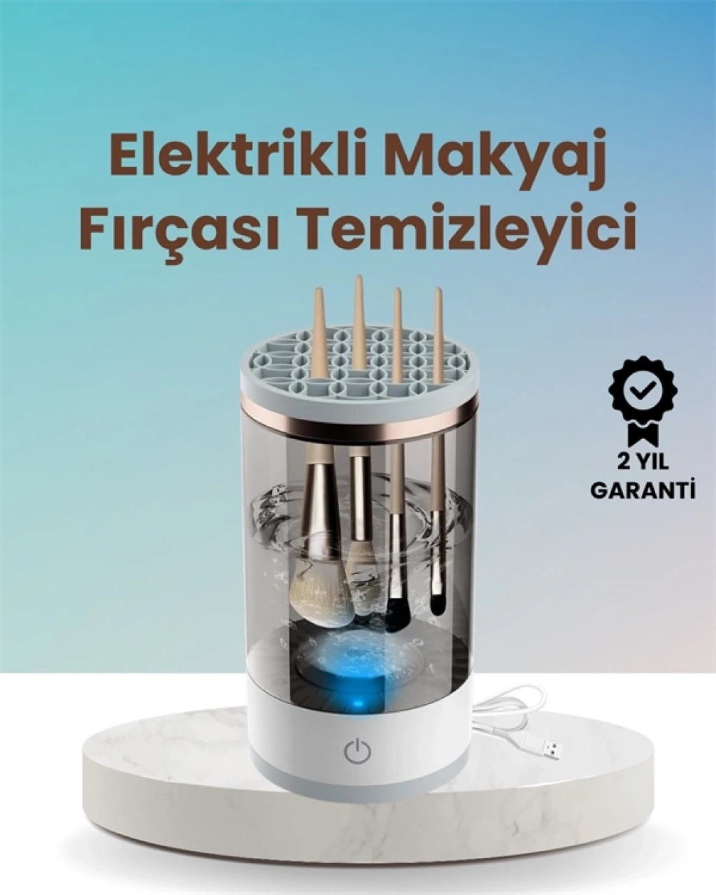 Makyaj rutinlerinizin vazgeçilmezi olan fırçalarınızı derinlemesine temizlemek artık daha kolay. Bu otomatik makyaj fırçası temizleyici cihaz, sonik titreşim teknolojisi ile çalışarak fırçaları zarar vermeden temizler.İster küçük bir göz farı fırçası, ister büyük bir fondöten fırçası olsun, her boyutta fırçaya uyum sağlayan esnek silikon başlık sistemi ile uyumludur. Aynı anda birden fazla fırçayı yıkayabilir, böylece hem zaman hem de enerji tasarrufu sağlar.Cihazın güçlü motoru sayesinde, su ve özel temizlik solüsyonu ile çalışarak fırçalarınızın içindeki makyaj kalıntısını, yağı ve kiri dakikalar içinde söker atar.USB kablo ile kolayca şarj olur, 5V2A adaptör ile uyumludur. Kompakt boyutu sayesinde hem evde hem seyahatte rahatlıkla kullanılabilir.Kullanımı oldukça basittir: su ve temizlik maddesi ekleyin, fırçaları yerleştirin ve tek tuşla temizliği başlatın. Cihaz ayrıca kurulama işlevine de sahiptir.
