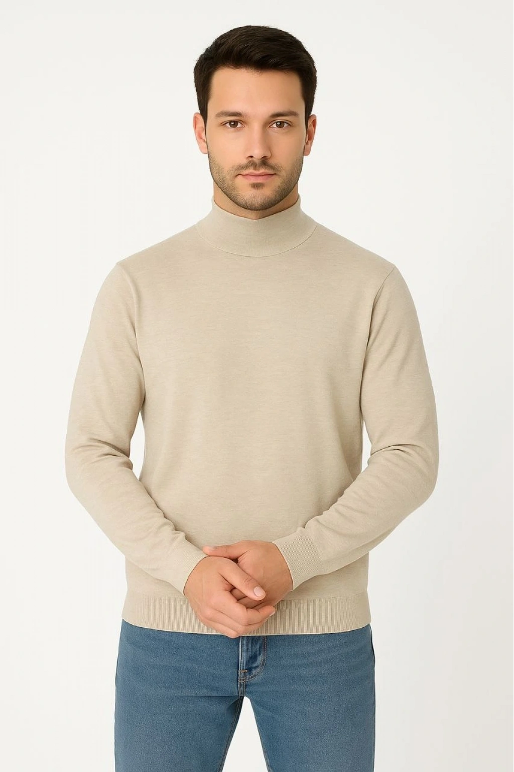 Yarım Boğaz Triko Kazak-hat Regular kalıp - Bej