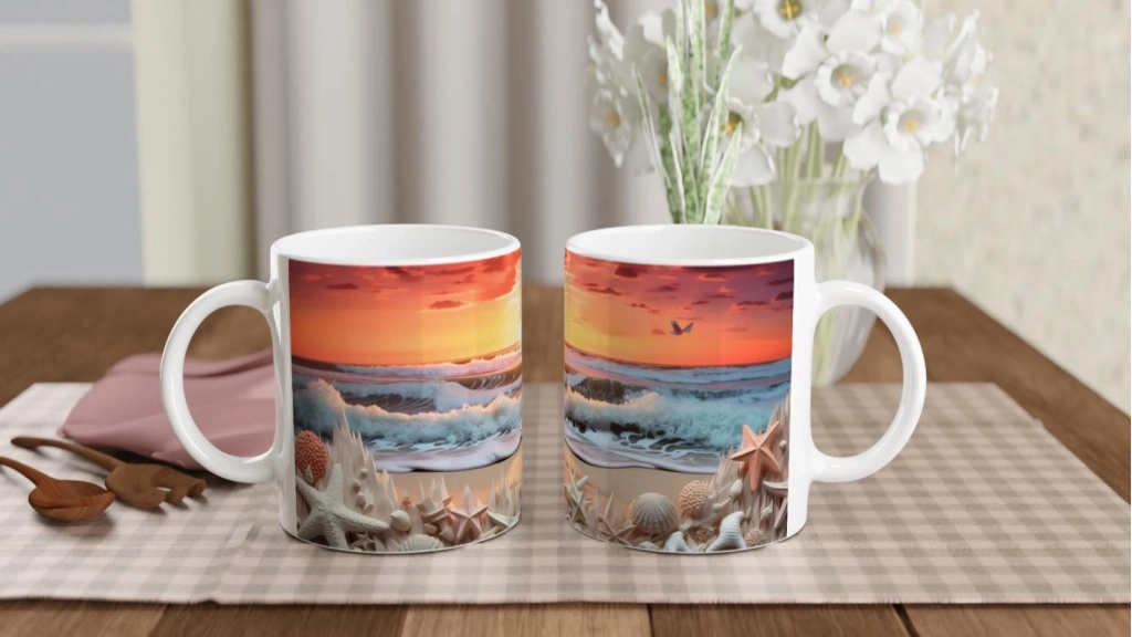 Gün batımının sıcak tonları ve deniz yıldızlarıyla bezenmiş bu özel kupa bardak, yaz akşamlarınıza estetik bir dokunuş katıyor.