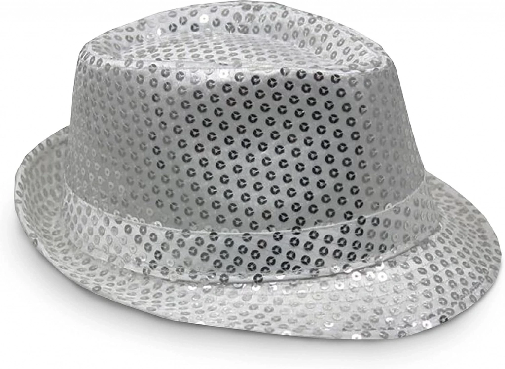 Disko Star Gümüş Payetli Fötr Şapka Yetişkin Boy