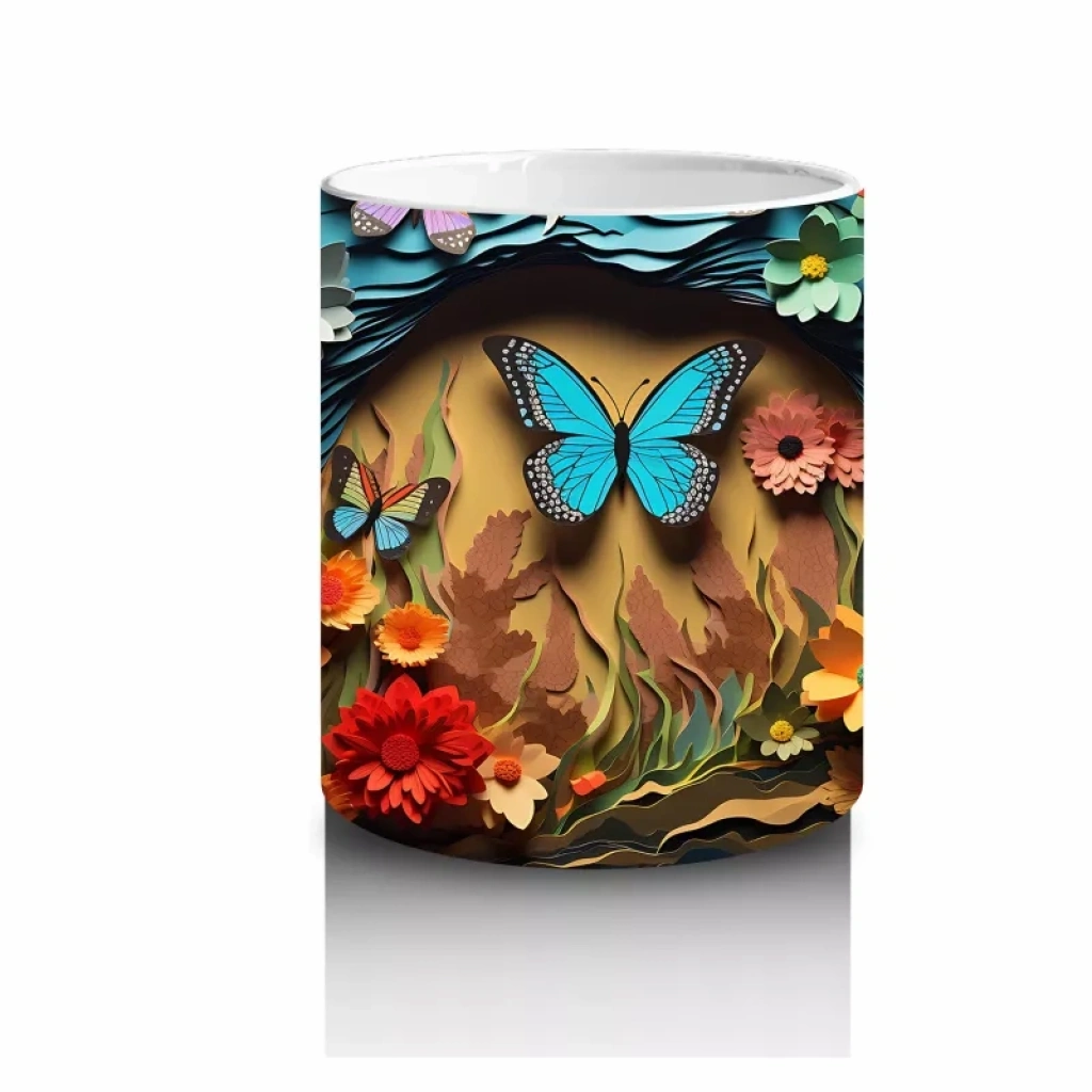 Doğal Taş Üzerinde Açık Mavi Kelebek – Baskılı Kahve Kupası