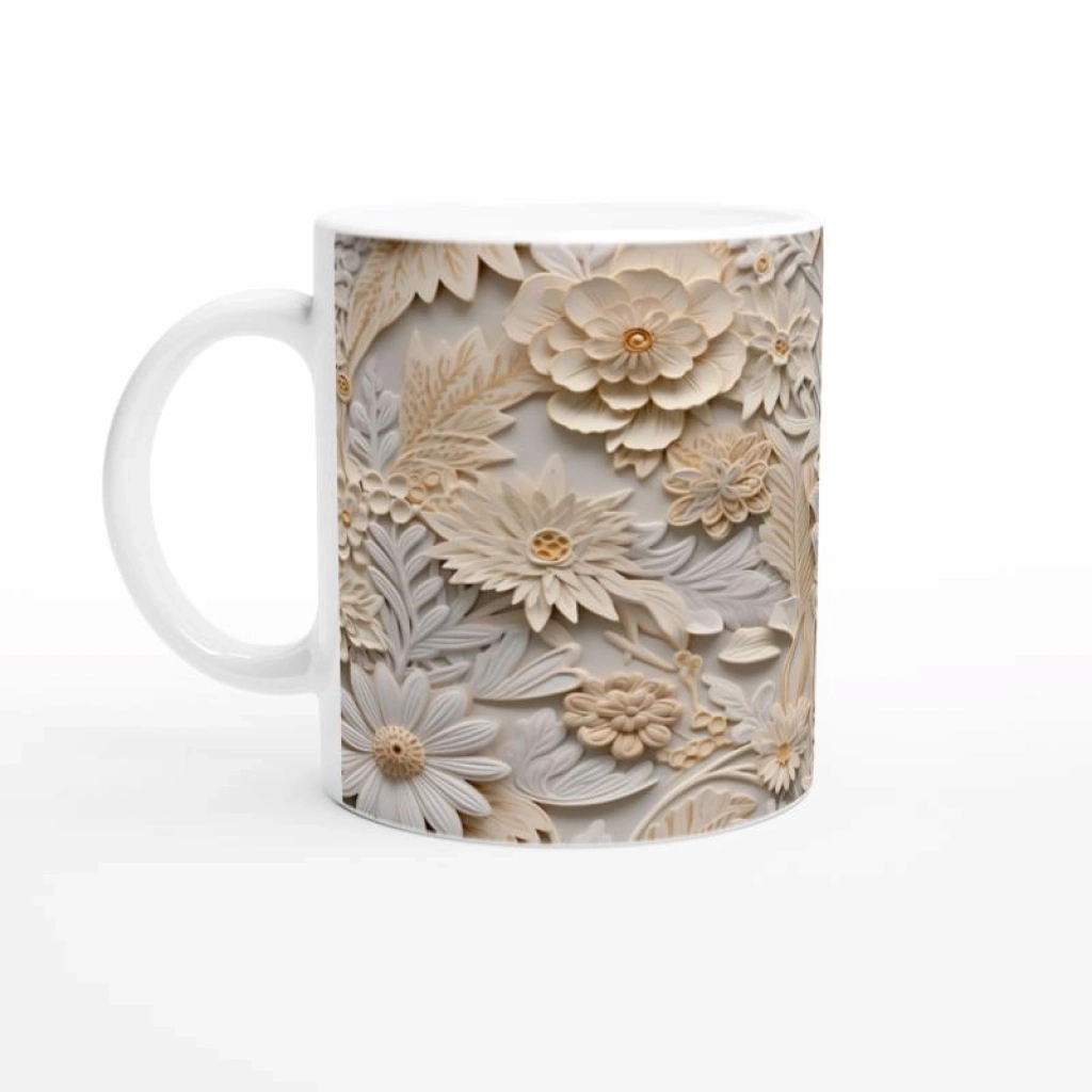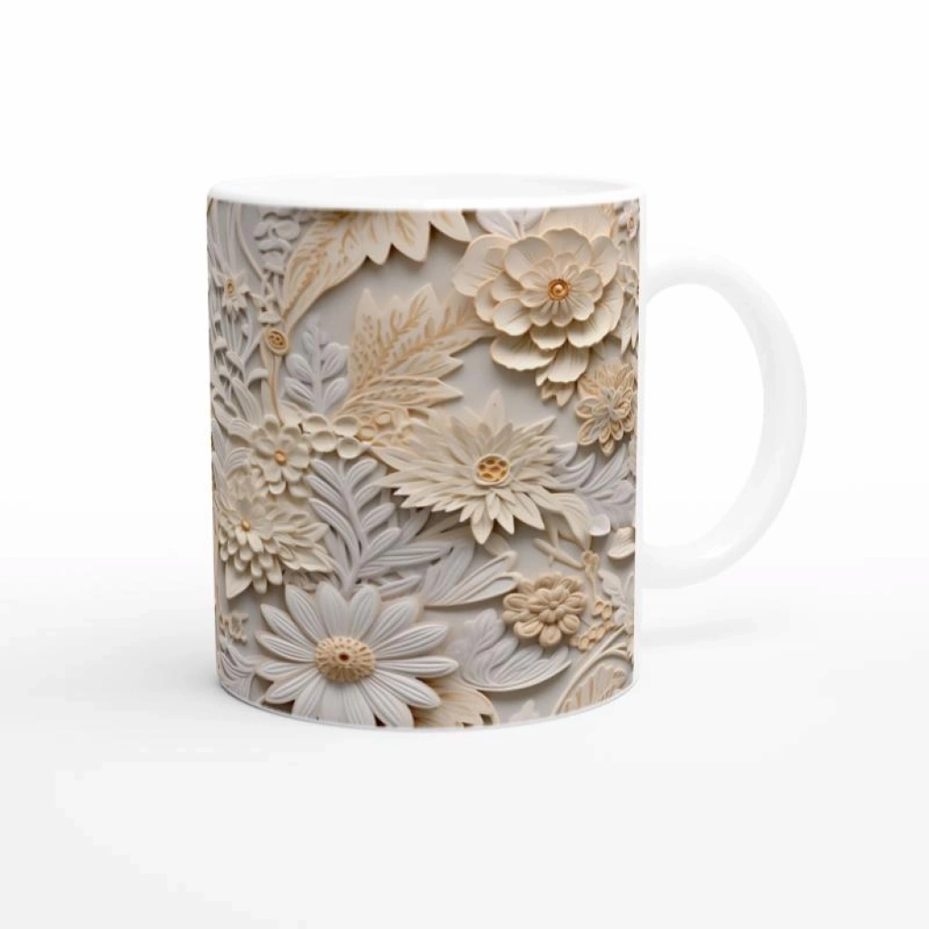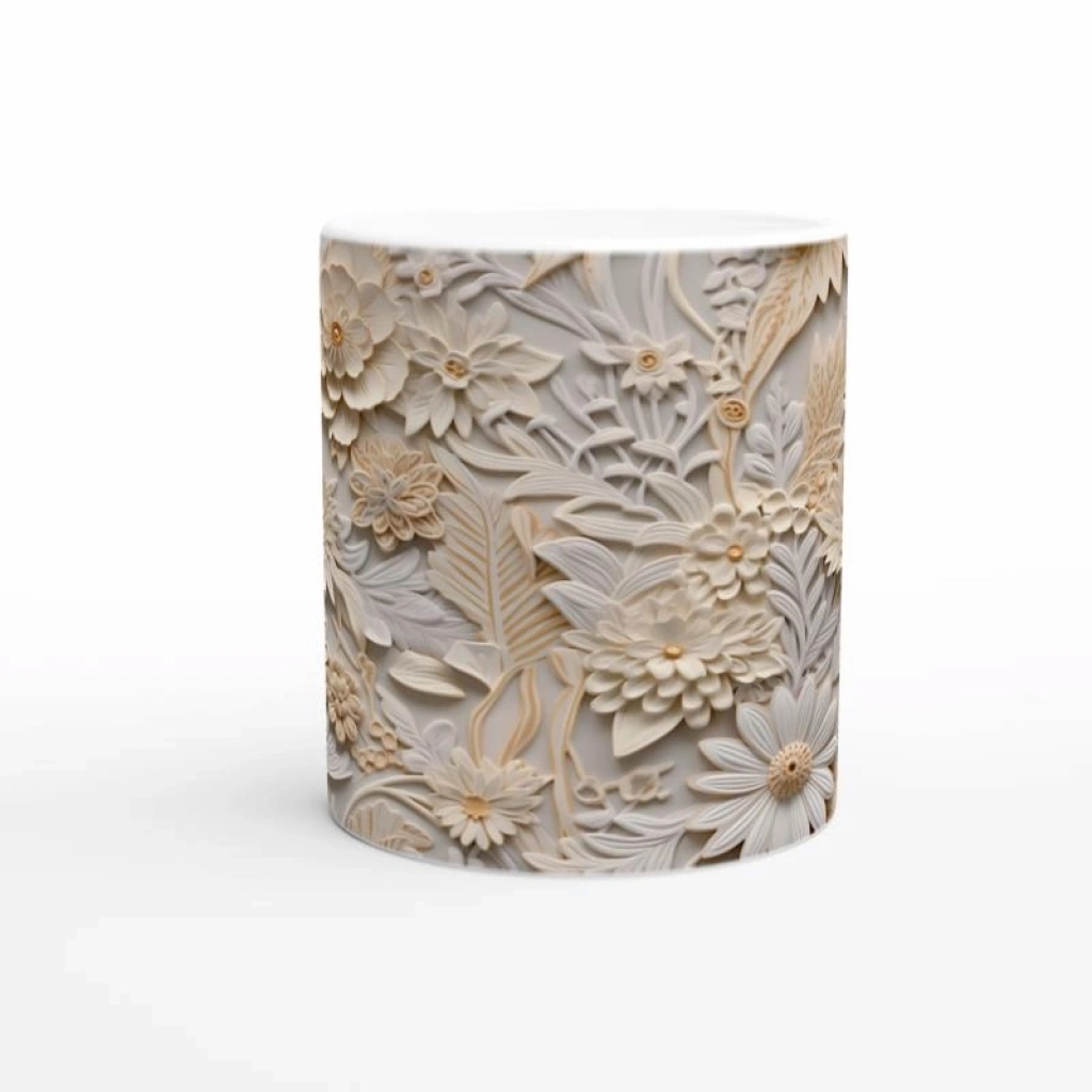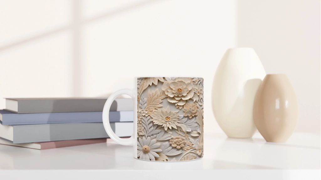 Doğal Tonlarda Kabartmalı Çiçek Desenli Kupa Bardak