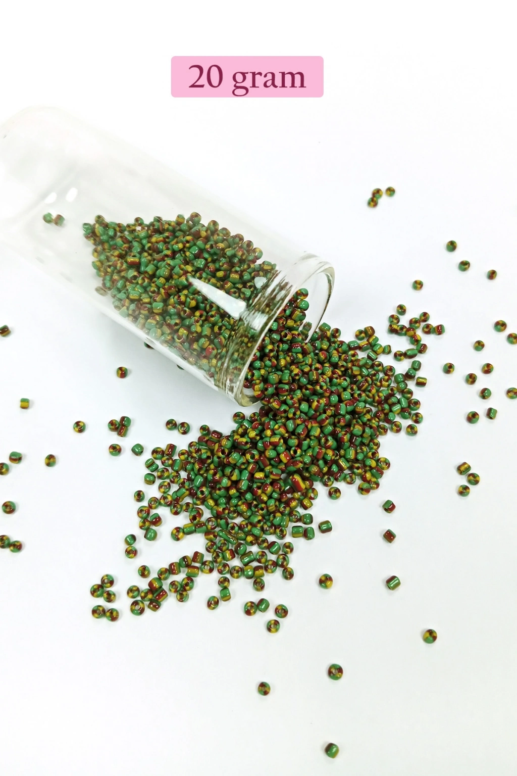 Dökme Cam Kum Boncuk (11/0) 2 mm - 20 Gram - Yeşil Sarı Çizgili - BNC006