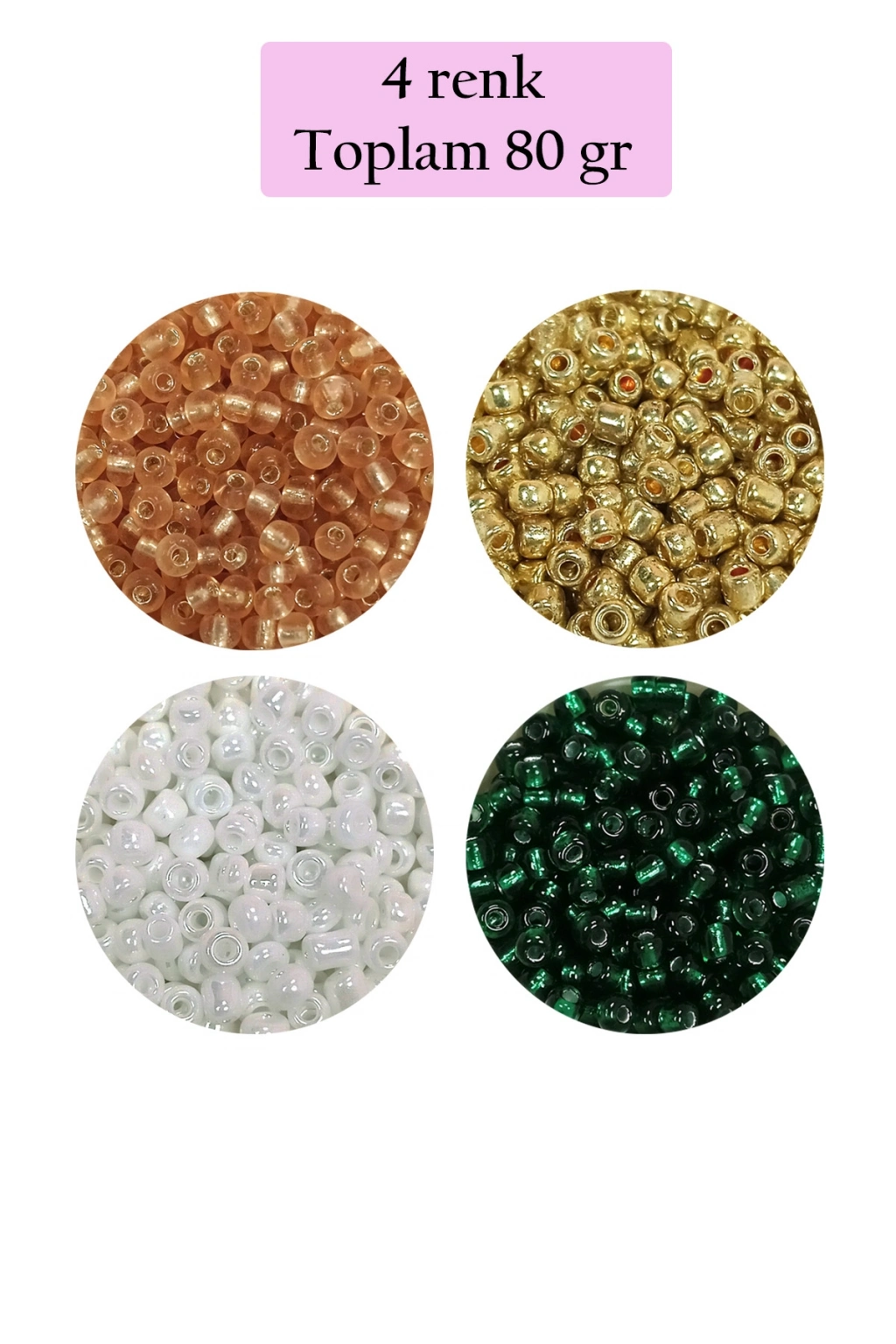 1 paket 3 mm 8/0 kum boncuk 4 Renk toplam 80 gramdır.