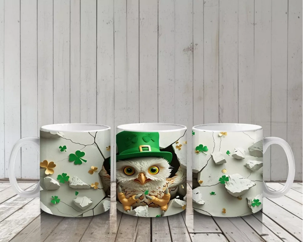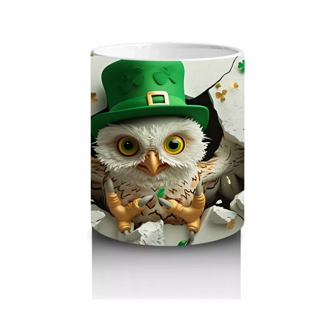 Bilgelik ve şans bir arada! Dört yapraklı yoncalar eşliğinde poz veren şapkalı baykuş, huzurlu sabah kahvelerine tatlı bir espri katıyor. Doğaya ve anlamlara önem verenler için eşsiz bir hediye.