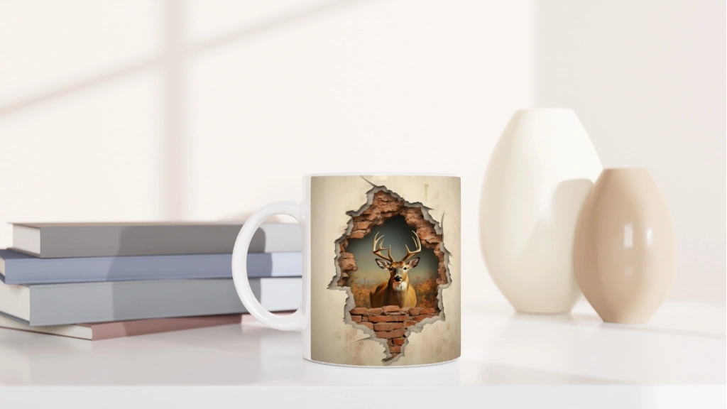 Duvar Kıran Geyik Baskılı Kupa Bardak