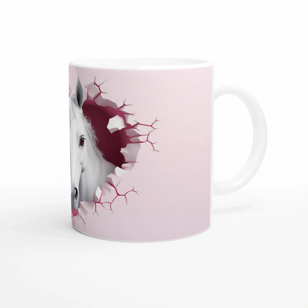 Duvarı Delen Beyaz At Temalı Baskılı Kupa Bardak