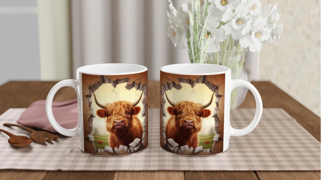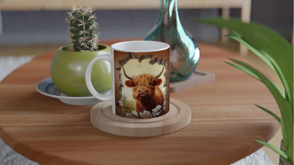 Duvarı Delen Highland Sığırı Kupa Bardak