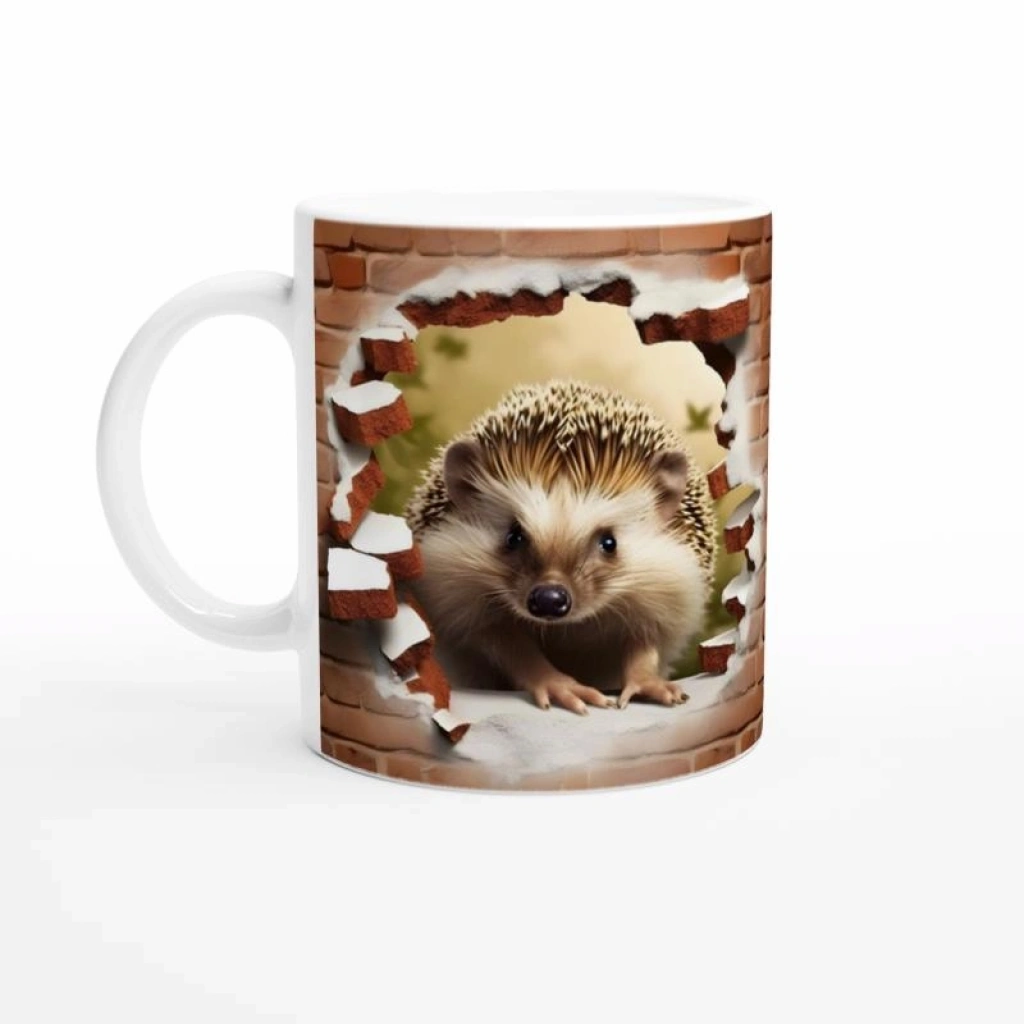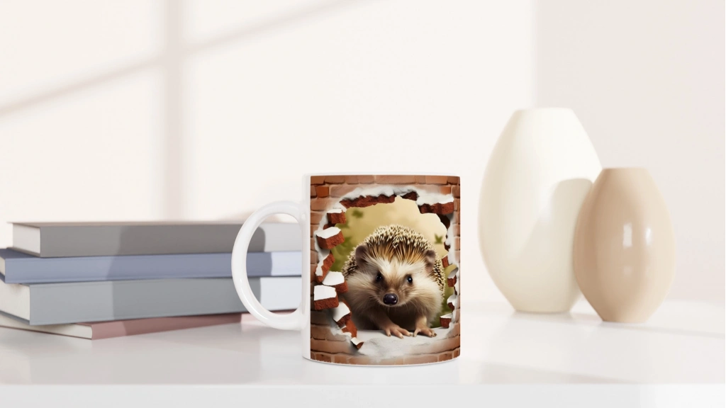 Tuğla duvarın arkasından çıkan minik kirpi detaylarıyla, bu kupa her yudumda gülümsetir.