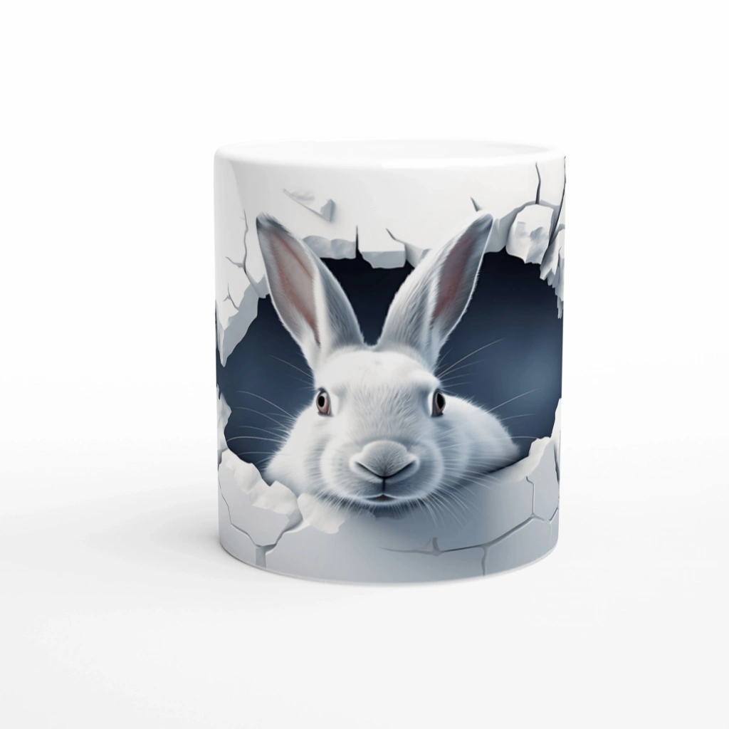 Duvarı Delen Meraklı Beyaz Tavşan Baskılı Kupa Bardak