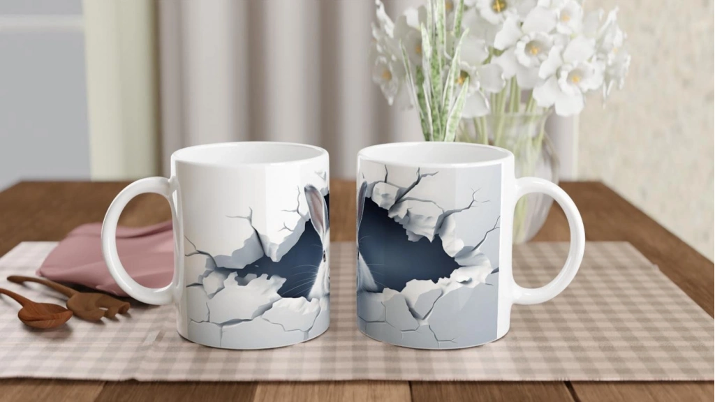 Duvarı Delen Meraklı Beyaz Tavşan Baskılı Kupa Bardak, göz alıcı 3D kırık duvar efekti ve minik tavşanın sevimli bakışlarıyla güne enerji katıyor. Hem esprili hem de minimalist yapısıyla dikkat çeken bu tavşan baskılı kupa, sıcak içecek keyfini görsel bir şölene dönüştürüyor. Özellikle hayvanseverler ve farklı hediye arayanlar için eşsiz bir tercih!