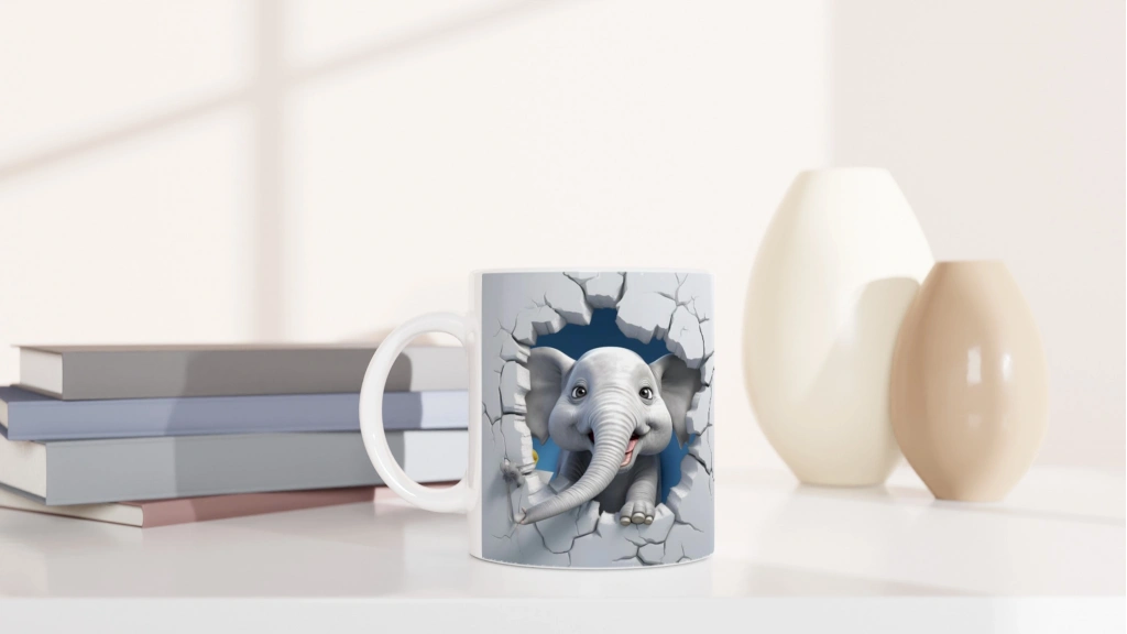 Duvarı delip çıkan bu neşeli fil tasarımı, sıradan kupalara meydan okuyor!
