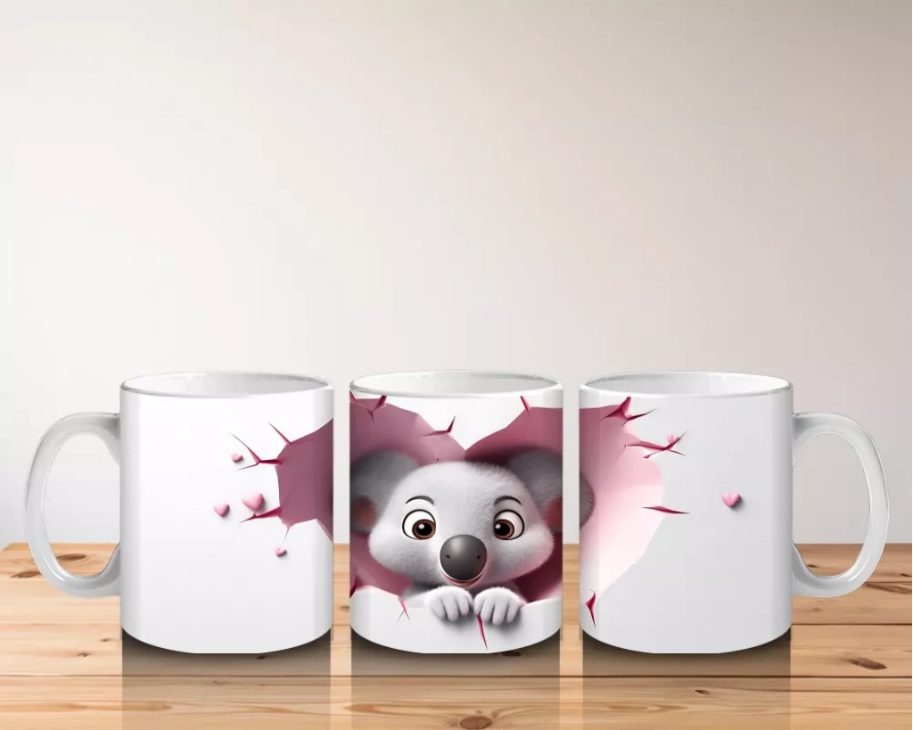 Duvarı Delen Tatlı Koala Figürü – Baskılı Kahve Kupası