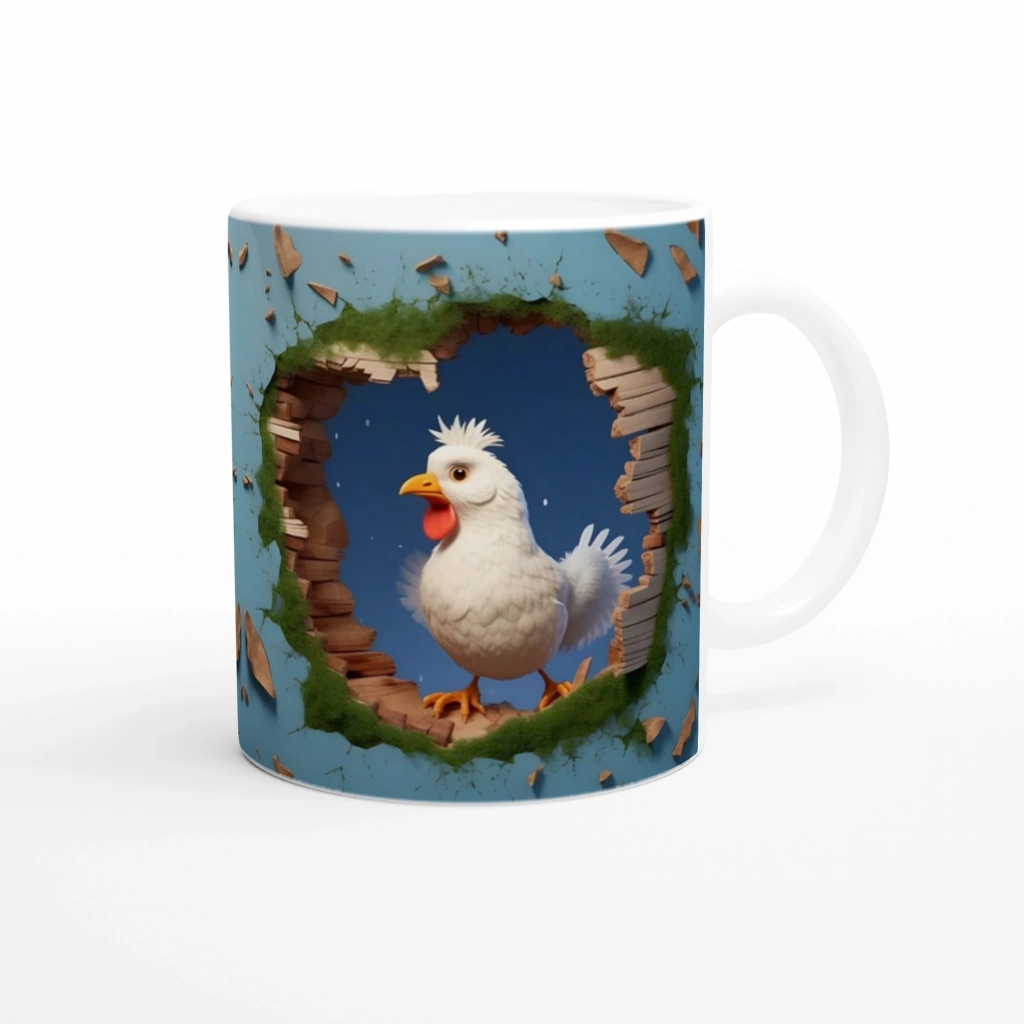 Duvarı delip çıkan bu komik tavuk tasarımı, kahve keyfinizi sıradışı bir deneyime dönüştürüyor.