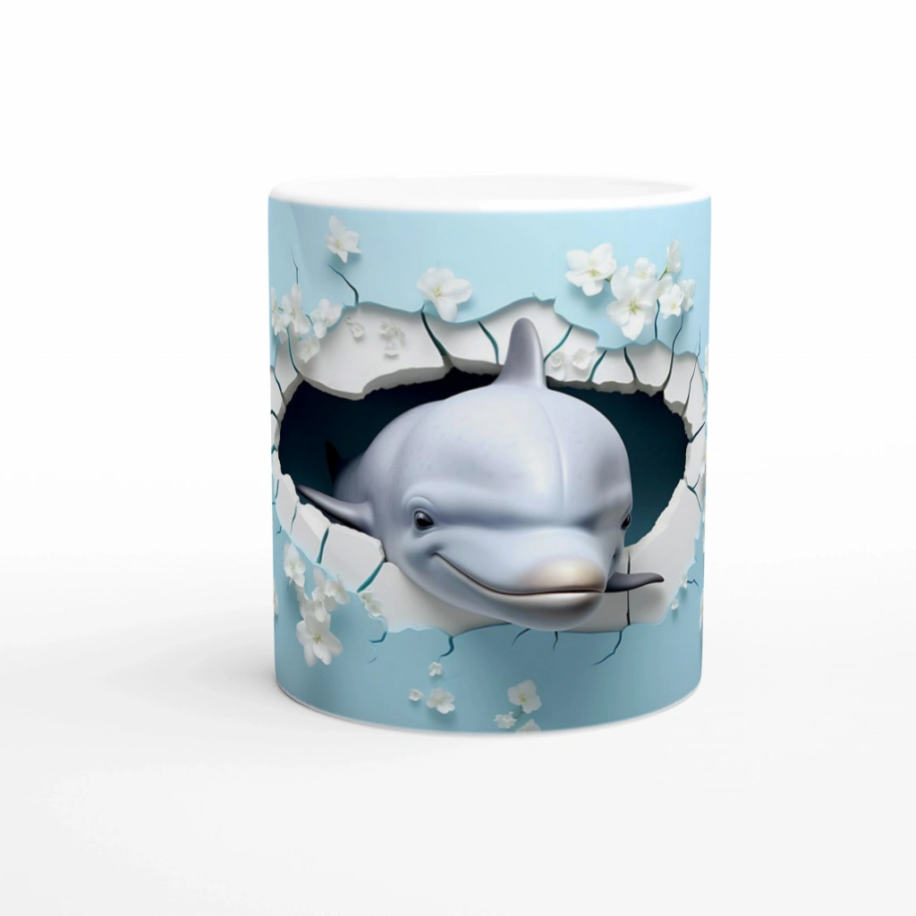 Duvarı Delen Yunus ve Çiçekler Temalı Baskılı Kupa Bardak, çatlak duvarın ardından gülümseyen sevimli yunus figürüyle pozitif enerji saçıyor. Deniz tutkunu olanlar ve sakinliği sevenler için estetik ve anlamlı bir hediye seçeneği.