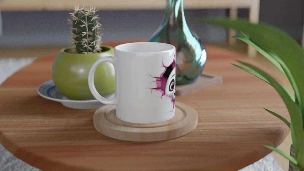 Pembe arka planla çerçevelenmiş sevimli pandanın bu tasarımı, çocuklar ve panda severler için harika bir hediye alternatifi. Her yudumda gülümseten eğlenceli bir detay!