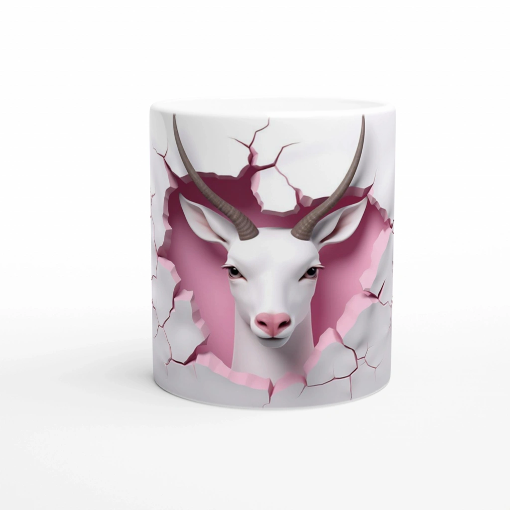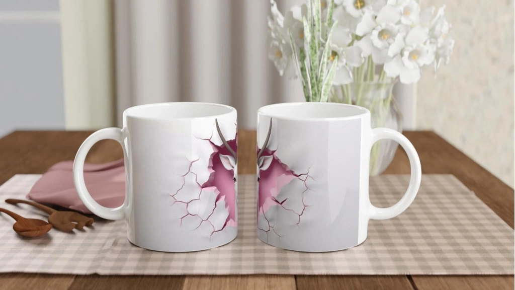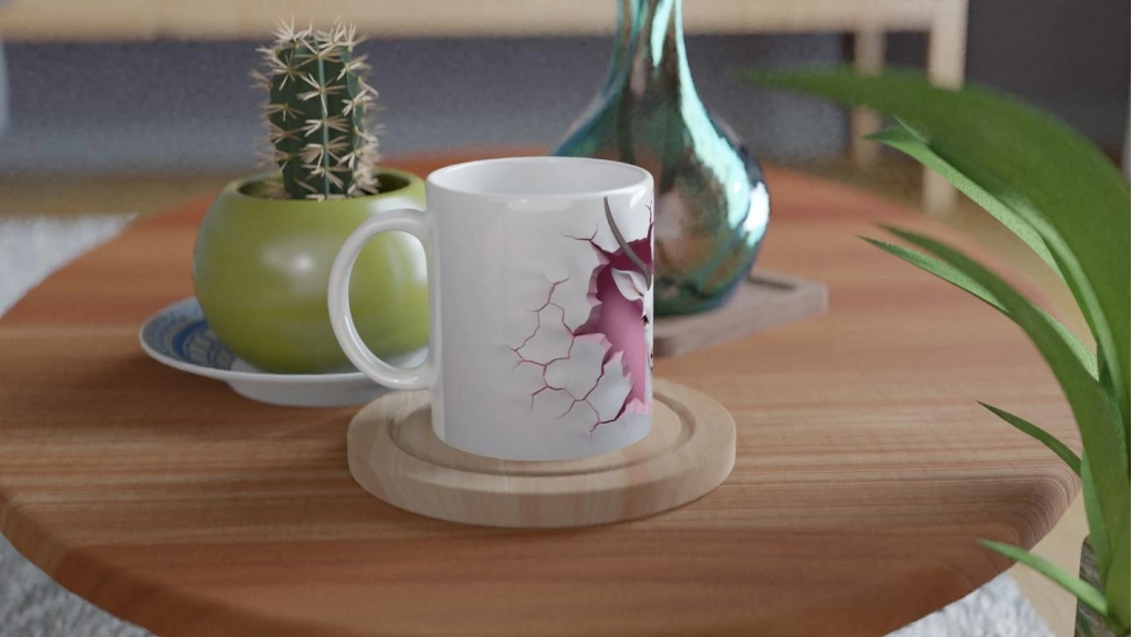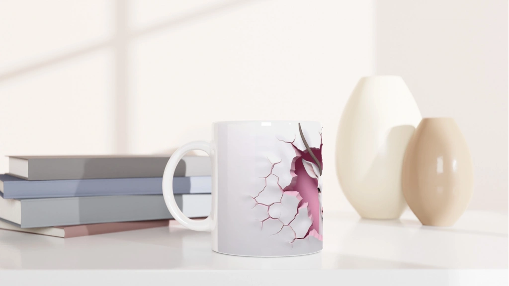 Duvarı yarmış gibi görünen tasarımıyla dikkat çeken bu özel kupa, beyaz ve pembe tonların uyumu sayesinde estetik bir görünüm sunuyor. Doğayı sevenlere şık bir içecek deneyimi vadediyor.