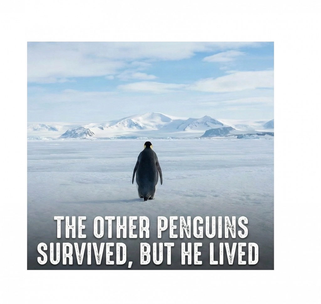 Erkek Oversize Tişört - Sırt Baskılı "Survivor Penguin" Temalı, Felsefi Yazılı Bisiklet yaka Tişört - Beyaz