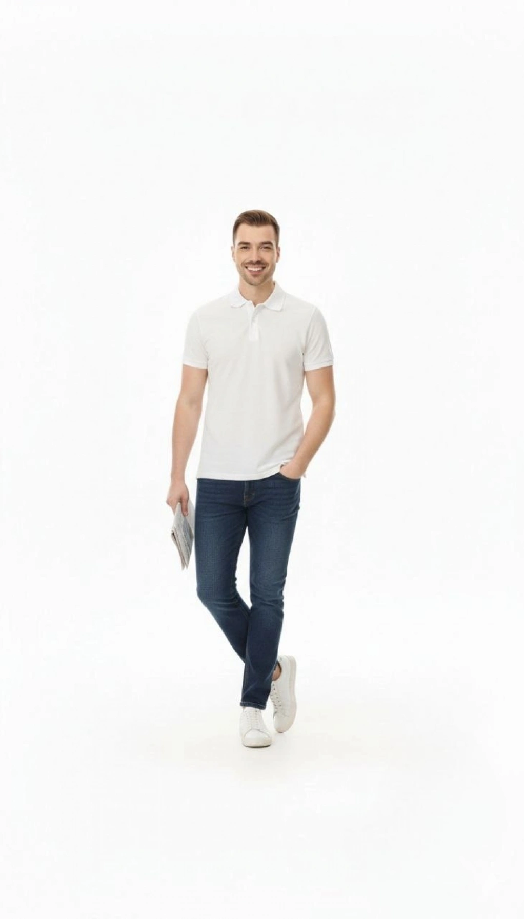 Erkek Pike Kumaş Düğmeli Yaka Regular Fit Günlük Kısa kol Tişört T-shirt - Beyaz