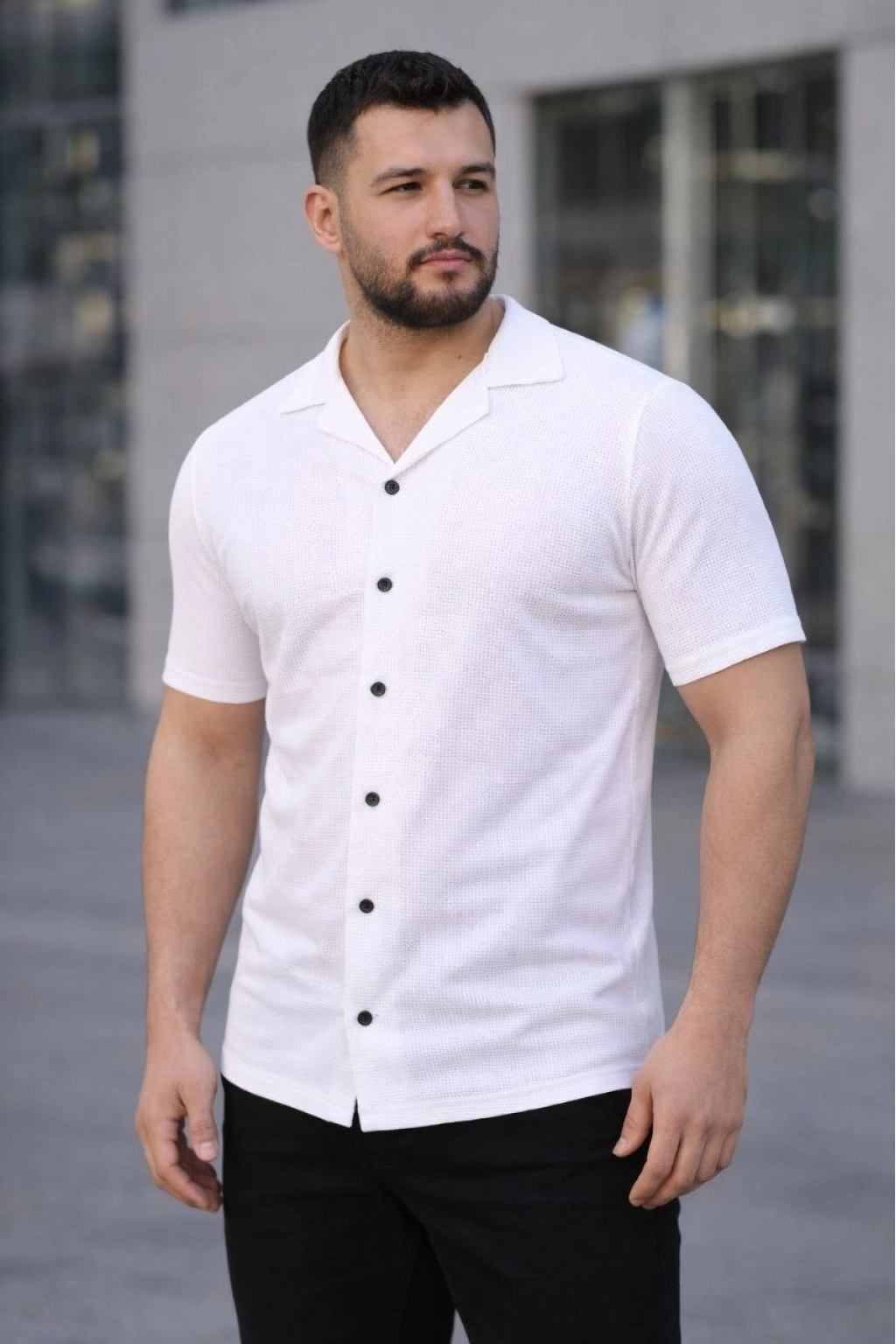 Erkek Waffle Dokuma Açık Yakalı Düğmeli Regular Kalıp 3’lü Gömlek Seti - Siyah, Kırmızı, Beyaz