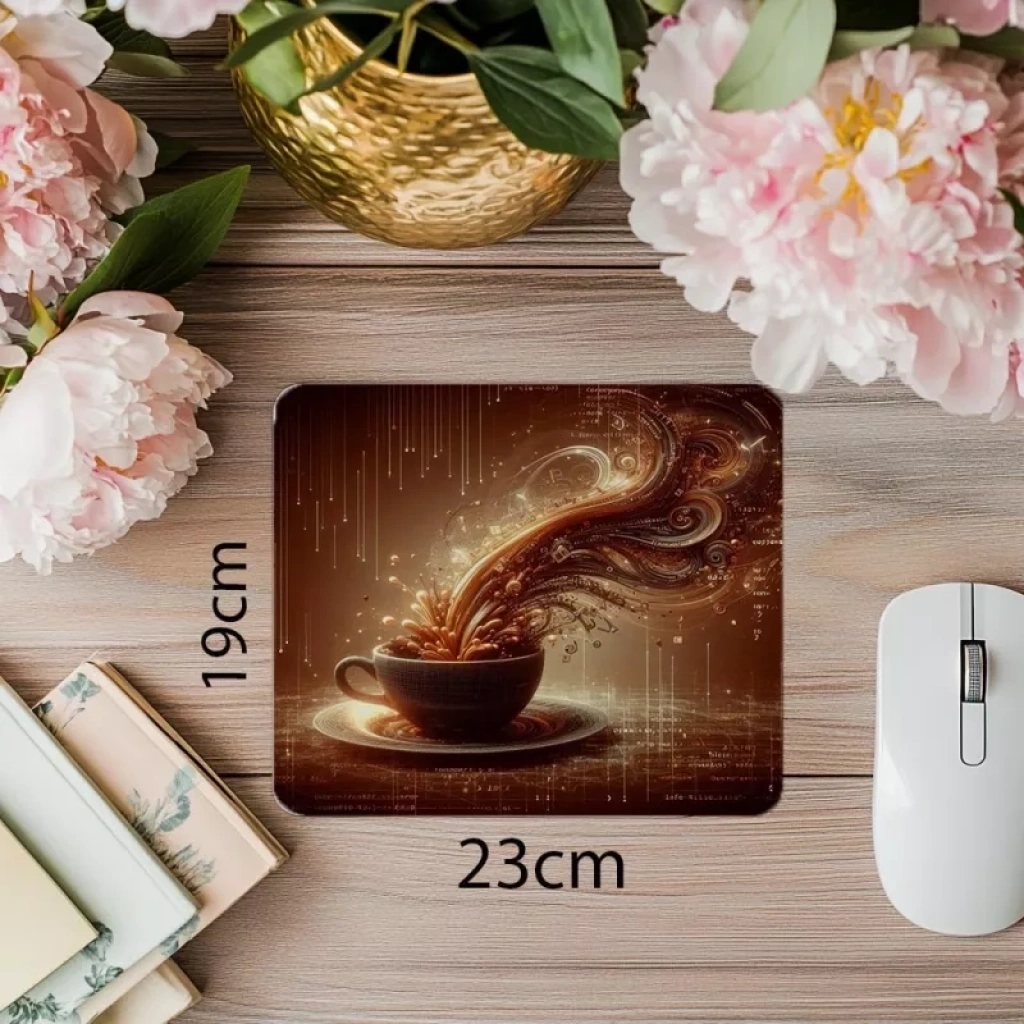 Espresso kod dönüşümü temalı mousepad, yüksek hassasiyetli yüzeyi ve kaymaz alt zeminiyle modern çalışma alanınıza dinamik bir dokunuş katar.