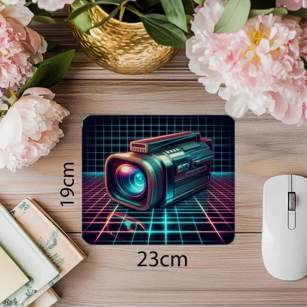 Ev Videoları Tarzı Neon Kamera Mouse Pad - 19x23 cm 2 mm Dikdörtgen İthal Baskılı Mouse Pad