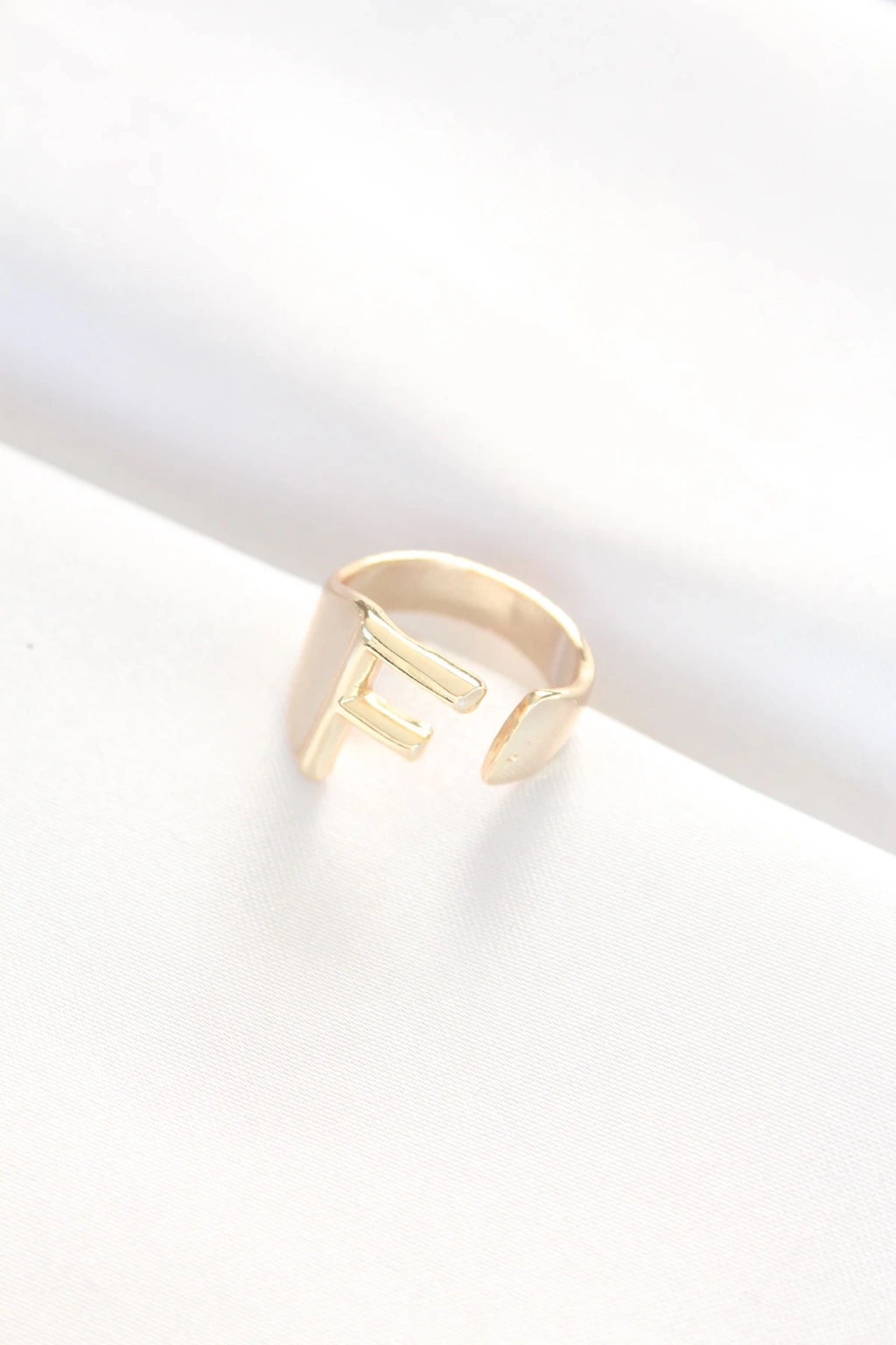 F Harfli Altın Renk Ayarlanabilir Yüzük